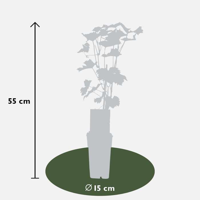 Vitis Venus’ is a seedless blue grape, suitable both for fresh consumption and as a wine grape. This variety has extra large fruits and is therefore a very good wine grape. It is a climbing plant that can grow several metres high. You can lead it into all kinds of shapes and keep it very compact by pruning it well. You can easily lead the grape along a pergola or on the wall with bungee cords. The grape first produces inconspicuous clusters of flowers in May-June, after which the grape bunches will form. The fruits are blue, with a sweet aromatic taste. You can eat them directly or use them to make jam, juice or wine. The grape plant needs plenty of sun to ripen and loves heat so a south-facing location is ideal. The grapes can be harvested from mid-September onwards. The soil should be well-drained and nutritious and preferably not too acidic, but rather calcareous. Pruning increases the fruit yield and the plant also looks neater. It is best to prune the plant in the period between November and February, but not during severe frost. Prune superfluous side and main branches. This grape variety is Hardy and can withstand temperatures up to -20 degrees.