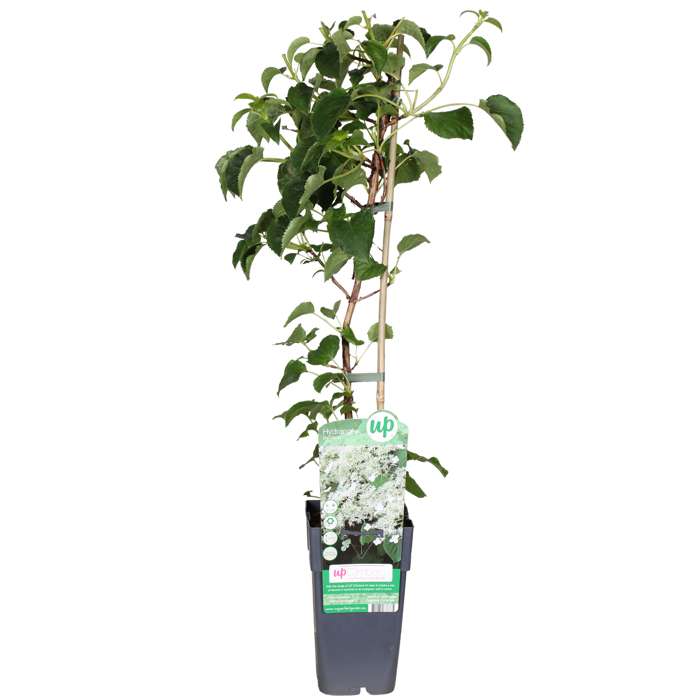 Hydrangea Petiolaris, also called climbing hydrangea. For years one of the most popular climbing plants. Logical, because we think it is very easy to maintain, does well in the shade and is a distant relative of the normal Hydrangea. That is probably also the reason for its fresh green leaves and beautiful white umbels. What makes the Hydrangea even easier to maintain is that it climbs upwards by means of self-adhesive roots on the branches. It therefore needs little help. You can keep this plant in good shape by pruning it properly. The Hydrangea will grow to a maximum height of about 5 metres.