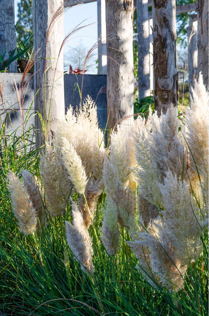 Wunderbar kompaktes Pampasgras, das auf dem Balkon oder der Terrasse wunderschön blüht