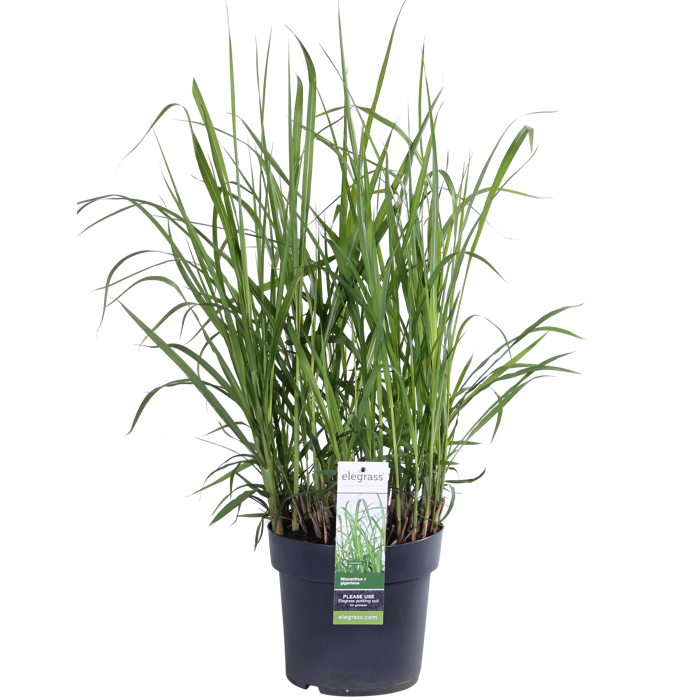 Großer grüner Miscanthus-Riese, der schöne große grüne schilfartige Stängel treibt