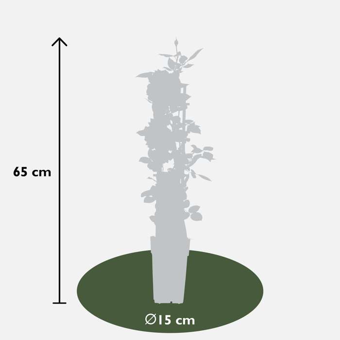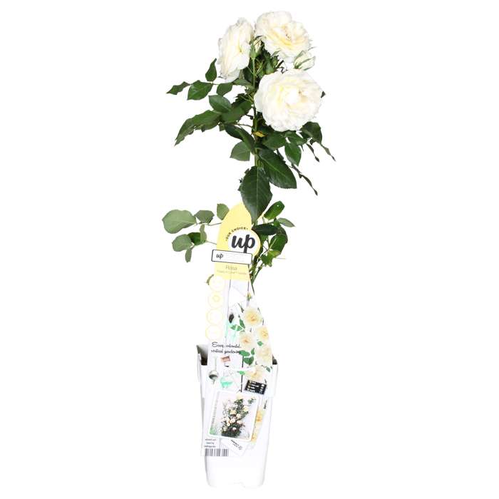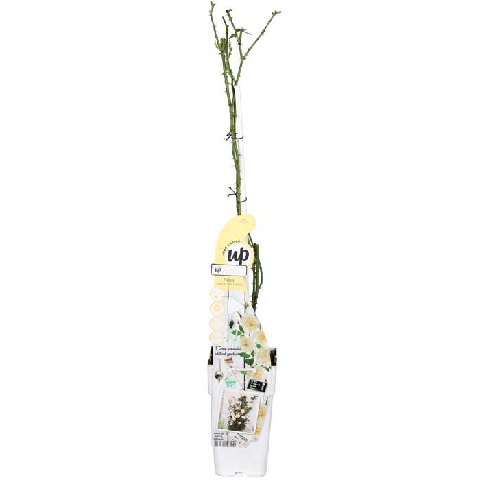 Rosa Crazy in Love Vanilla‘ ist eine beliebte cremeweiße Kletterrose mit frischgrünen, glänzenden Blättern. Rosen gehören seit Hunderten von Jahren zu den bekanntesten und am häufigsten gepflanzten Pflanzengruppen. Die Rose hat in verschiedenen Kulturen einen symbolischen Wert. Schon in der Antike wurden Tempel und Paläste mit ihnen geschmückt. Die Rose beginnt im Juni zu blühen und blüht bis zum ersten Frost im Oktober oder November. Um die Blüte zu fördern, ist es ratsam, alte und verwelkte Blüten zu entfernen. Die Kletterrose mag einen sonnigen Standort und sollte für ein optimales Wachstum alle zwei Jahre auf etwa 30 Zentimeter über dem Boden zurückgeschnitten werden. Auf diese Weise verhindern Sie, dass die Rose darunter kahl wird. Die beste Zeit dafür ist der Herbst oder das zeitige Frühjahr. Die Rose braucht etwas Hilfe beim Klettern. Dazu können die Äste an einem Gestell, einem Pfosten oder einem Zaun entlanggeführt werden. Rosen sind bekannt dafür, dass sie viele Nährstoffe benötigen. Um die Kletterrose gesund zu halten, raten wir Ihnen, sie jährlich mit Kunstdünger speziell für Rosen zu versorgen.