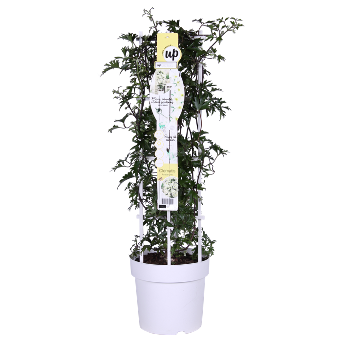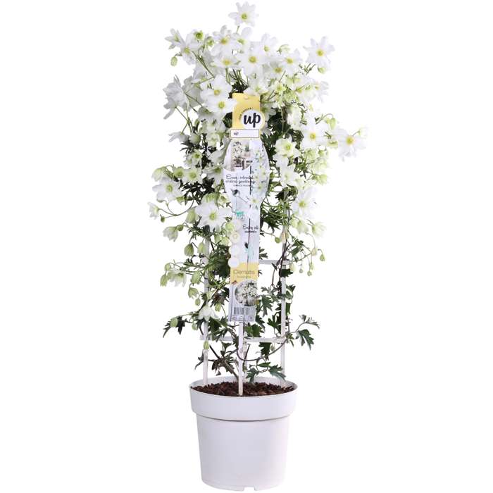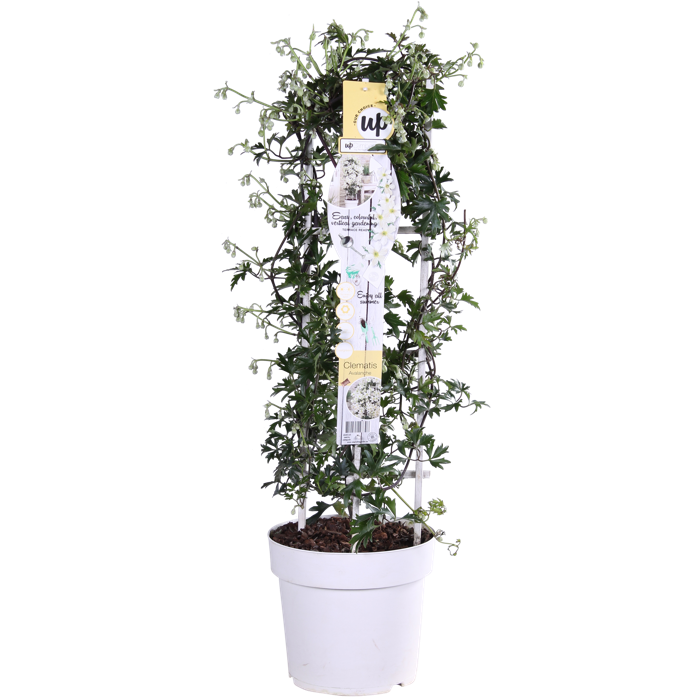 Clematis Avalanche‘ ist eine immergrüne und früh blühende Clematis. Das Schöne an dieser Clematis ist ihre üppige Blüte mit schönen weißen Blüten. Die ersten Blüten erscheinen Mitte März, und am Ende des Monats hat sich Ihr Garten in ein weißes Blütenmeer verwandelt. Die ‚Clematis Avalanche‘ verdankt ihren Namen der großen weißen Schneelawine, in die sich Ihr Garten zu verwandeln scheint, sobald diese Pflanze zu blühen beginnt. Sie ist eine Kletterpflanze, die sich mit gewundenen Blattstielen festhält und gut an einem Zaun, einer Mauer oder einer Pergola wachsen kann, aber Kletterdraht oder ein Klettergerüst benötigt. Sie können ihm hin und wieder helfen, indem Sie neue Triebe ordentlich am Gestell festbinden oder sie durch den Zaun führen. Sie bevorzugt einen geschützten und sonnigen Platz im Garten. Diese Waldrebe blüht üppiger, wenn sie mehr Sonne bekommt. Die Clematis ist bis -10 Grad winterhart. Ein Rückschnitt der Clematis ist nicht erforderlich. Nach der Blüte kann man sie ein wenig zurückschneiden, um die Blüte zu fördern.