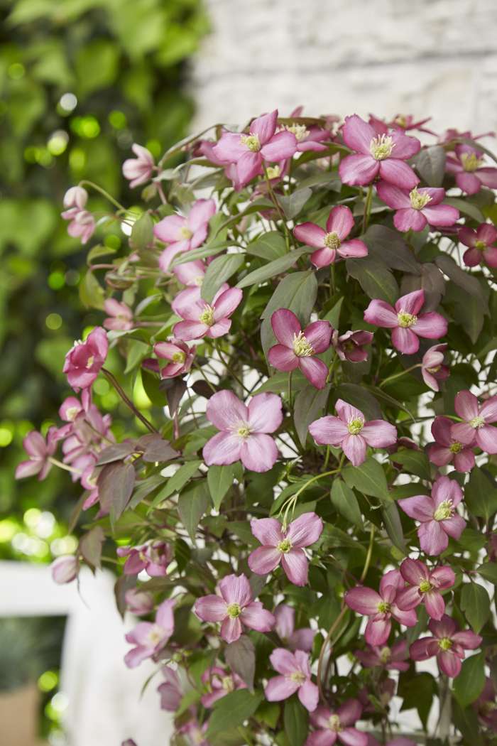 Die Clematis ‚Montana‘ ist eine unserer Lieblingssorten. Sie ist eine kräftige Kletterpflanze, die schnell wächst und sehr üppig mit zahlreichen fröhlichen Blüten blüht. Die ‚Montana‘-Sorten wachsen schneller als die großblumigen Clematis-Sorten. Die Clematis ‚Montana‘ aus der Serie ‚Our Choice‘ zeichnet sich durch eine längere und reichere Blüte aus und ist widerstandsfähiger gegen Krankheiten als die normalen ‚Montana‘-Sorten. Sie bleiben viel kompakter und werden 2 bis 3 Meter hoch. Diese Waldrebe kann in einen großen Topf oder Pflamzkasten gesetzt werden, sie kann aber uch an einem Klettergerüst wachsen. Sie blühen im Mai/Juli mit intensiv gefärbten kleinen Blüten, die sich mit zunehmendem Alter verfärben. Stellen Sie diese Clematis in die volle Sonne oder in den Halbschatten. Wenn die Clematis in der prallen Sonne steht, ist es wichtig, dass die Wurzeln nicht in die Sonne gestellt werden. Bedecken Sie den Wurzelballen gut und pflanzen Sie ihn 10 bis 15 cm tief ein. Nach der Blütezeit kann die Pflanze auf 50 cm zurückgeschnitten werden. Das Beschneiden hält die Pflanze jung und in Form, aber es ist nicht notwendig, sie zu beschneiden.