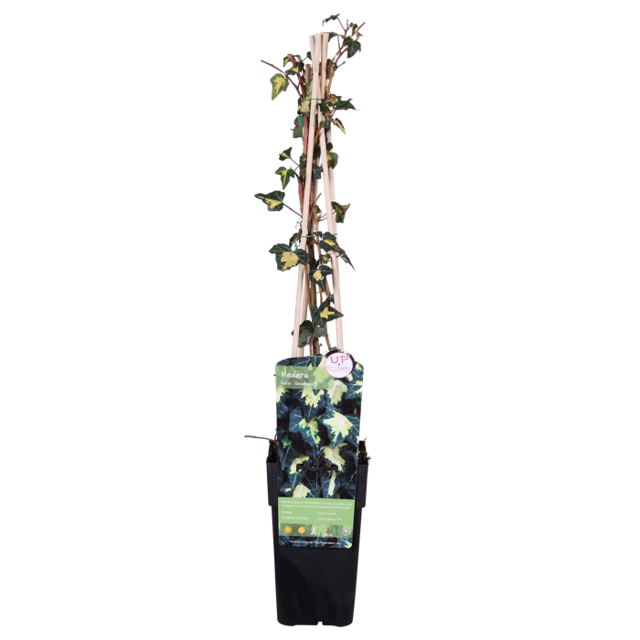 Die Hedera (Efeu). Wer kennt sie nicht? Sie ist seit Jahren eine der meistgepflanzten Kletterpflanzen. Der Grund dafür ist, dass diese Kletterpflanzen sehr pflegeleicht sind und auch im Winter schön grün bleiben. Hervorragend geeignet, um eine hässliche Mauer oder einen Schuppen zu kaschieren, aber auch als (winterliche) grüne Trennung zwischen Ihnen und Ihren Nachbarn. Die häufigsten Arten sind die Helix und die Hibernica, von denen die Hibernica die am schnellsten wachsende ist. Es gibt jedoch noch viele weitere Sorten in allen möglichen Blattfarben und -formen. Wir haben zum Beispiel auch das Goldherz (gelb/fellig), die Gloire de Marengo (algerischer Efeu) und die Dentata Variegata (große panaschierte Blätter).