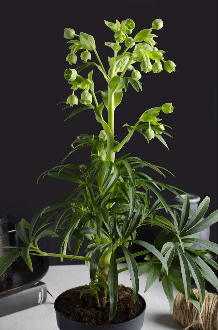 Hellgrüne, nickende Blüten in Büscheln ohne Blütenblätter.