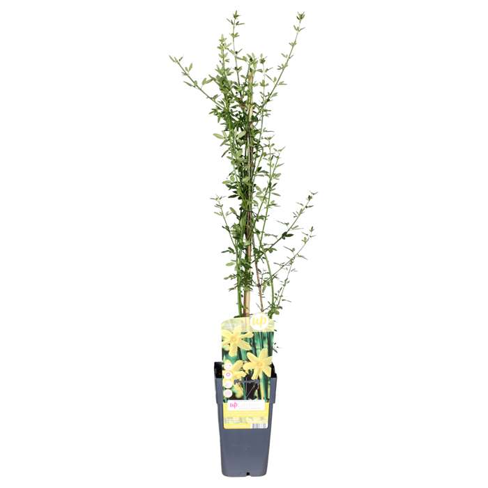 Dieser Gartenjasmin ist eine einzigartige Kletterpflanze, da sie im Winter blüht. Im Januar und Februar erscheinen zahlreiche gelbe Blüten an den dann kahlen Zweigen. Ein sehr erfreulicher Anblick, zu einer Zeit, in der kaum etwas anderes im Garten blüht. Jasminum ist keine selbstklimmende Kletterpflanze mit verzweigten Ästen oder Haftwurzeln. Die Pflanze gehört zu den Spalierpflanzen und lässt sich gerne in die gewünschte Richtung führen. Das bedeutet allerdings, dass Sie Ihren Jasmin regelmäßig an einem Gestell oder Zaun zurückbinden müssen. Ein guter Rückschnitt ist ebenfalls wichtig, um die Pflanze in guter Form zu halten.
