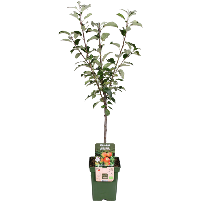 Malus Domestica Elstar‘ ist einer der bekanntesten Apfelbäume der Niederlande. Der Elstar-Apfel ist eine bekannte Sorte, die man in jedem Lebensmittelgeschäft findet, aber nichts macht mehr Spaß, als diese köstliche Frucht im eigenen Garten anzubauen. Der Baum ist selbstbestäubend und hat im Frühjahr eine weiß-rosa Blüte. Die frisch-sauren Handäpfel können im Herbst gepflückt werden und sind relativ lange haltbar. Äpfel enthalten viele Ballaststoffe, Vitamine und Antioxidantien. Sie ist auch die am häufigsten gegessene Frucht in den Niederlanden. Es handelt sich um eine ziemlich große Frucht mit leuchtend roter Farbe und festem, saftigem Fruchtfleisch. Geben Sie ihm Raum, damit er sich zu einem richtigen Baum entwickeln kann. Alle Früchte, auch der Apfel, reifen am besten in der Sonne. Geben Sie ihr also einen sonnigen Platz. Es ist am besten, den Apfelbaum im Winter zu schneiden. Der Apfelbaum ist nicht anfällig für Krankheiten und leicht zu pflegen.