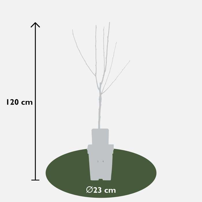 Leckeres grünes Obst aus 100% biologischem Anbau. Das bedeutet, dass beim Anbau nur pflanzliche und tierische Stoffe verwendet wurden. Der Topf und das Etikett bestehen aus recyceltem Kunststoff und sind somit eine saubere Lösung für die Umwelt. ‚Prunus Domestica Opal‘ ist ein Pflaumenbaum mit saftigen und süßen Früchten, die außen eine violett-rote Farbe und gelbes Fruchtfleisch haben. Diese Pflaume ist unempfindlich gegenüber der Art des Bodens, in dem sie gepflanzt wird, sie ist fast unempfindlich gegenüber Krankheiten und selbstbestäubend. Daher benötigt er keinen anderen Baum zur Bestäubung. Sie ist eine früh reifende Pflaume, deren Früchte ab Juli geerntet werden können. Sie ist eine feine Handpflaume, aber auch sehr gut für Kompott und Marmelade geeignet. Der ‚Prunus domestica Opal‘ braucht im Allgemeinen nicht viel Rückschnitt. Wenn Sie die Pflanze beschneiden wollen, tun Sie dies am besten nach der Blüte. Achten Sie schließlich darauf, dass der Baum offen ist und eine Reihe von Hauptästen aufweist, aus denen die Seitenäste hervorgehen. Es ist ein Pflaumenbaum, der viele Blüten und eigene Früchte in Ihrem Garten hervorbringt. Alle Früchte, auch die Pflaume, reifen am besten in der Sonne. Geben Sie diesem Obstbaum also einen sonnigen Platz im Garten.