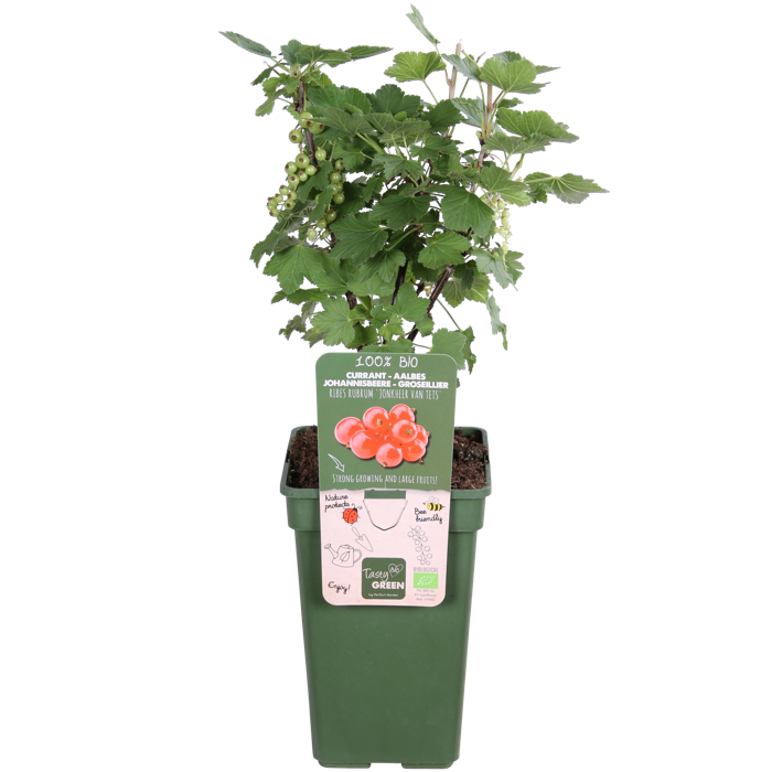 Leckeres grünes Obst aus 100% biologischem Anbau. Das bedeutet, dass beim Anbau nur pflanzliche und tierische Materialien verwendet wurden. Der Topf und das Etikett bestehen aus recyceltem Kunststoff und sind somit eine saubere Lösung für die Umwelt. Ribes Rubrum Jonkheer van Tets‘ ist eine rote Johannisbeere. Der Strauch wächst kräftig und hat einen hohen Fruchtertrag. […]