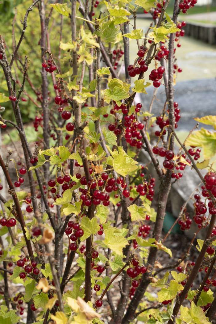 Ribes Rubrum Jonkheer van Tets‘ ist eine rote Johannisbeere. Der Strauch wächst kräftig und hat einen hohen Fruchtertrag. Sie ist eine der am frühesten reifenden roten Johannisbeeren, die Beeren sind bereits Ende Juni reif. Die Beeren wachsen in langen Trauben und haben einen säuerlichen, aber frischen Geschmack. Man kann sie zum Beispiel in Torten oder als Marmelade essen. Der Strauch blüht im Frühjahr mit kleinen grün-weißen Blüten. Der Schnitt beeinflusst die Menge und Größe der Beeren und ist daher wichtig. Sie können den Strauch im zeitigen Frühjahr beschneiden. Um den Strauch kompakt zu halten, können Sie die abgestorbenen Zweige auf einen gesunden Seitenast zurückschneiden. Er ist ein selbstbestäubender Strauch und zieht Schmetterlinge und Bienen an. Sie können ihn im Garten aufstellen, aber natürlich auch auf einem Balkon oder einer Terrasse. Sie wächst in jedem Boden und mag volle Sonne.