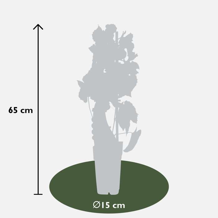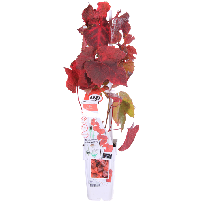 Vitis vinifera Red Rudy‘ ist eine rote Weintraubensorte. Sie ist eine Kletterpflanze, die mehrere Meter hoch werden kann. Man kann ihn in alle möglichen Formen bringen und ihn durch einen guten Schnitt sehr kompakt halten. Sie können die Traube einfach entlang einer Pergola oder an einer Wand mit Spanndrähten führen. Die Traube bildet im Mai-Juni zunächst unscheinbare Blütentrauben aus, aus denen sich dann die Trauben bilden. Die Früchte sind rot-violett und haben einen süßen, aromatischen Geschmack. Man kann sie direkt essen oder zu Marmelade, Saft oder Wein verarbeiten. Die Traubenpflanze braucht viel Sonne, um zu reifen, und liebt die Wärme, so dass ein nach Süden ausgerichteter Standort ideal ist. Die Trauben können ab Mitte September geerntet werden. Der Boden sollte gut durchlässig und nährstoffreich sein und möglichst nicht zu sauer, sondern eher kalkhaltig. Durch Schnitt wird der Fruchtertrag erhöht und die Pflanze sieht auch gepflegter aus. Am besten ist es, die Pflanze zwischen November und Februar zu beschneiden, aber nicht bei strengem Frost. Überflüssige Seiten- und Hauptäste beschneiden.
