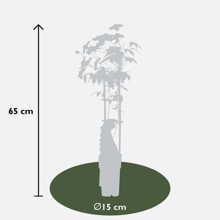 The Clematis ‘Montana’ is one of our favourites. It is a strong climber that grows quickly and flowers very abundantly with numerous cheerful flowers. The ‘Montana’ varieties grow faster than the Large flowers Clematis varieties. The Clematis ‘Montana’ varieties from the ‘Our Choice’ series are characterised by longer and richer flowering and are more resistant to disease than the regular ‘Montana’ varieties. They remain much more compact and grow to a height of 2 to 3 metres. The Clematis can be placed in a large pot or flower box, but can also grow against a climbing frame. They bloom in May/July with intensely coloured small flowers that change colour as they get older. Place this Clematis in the full sun or semi shade. If the Clematis is in full sunlight, it is important that the roots stay out of the sun. Cover the root ball well and plant it 10 to 15 cm deep. After the flowering period, the plant can be pruned back to 50 cm. Pruning keeps the plant young and in shape, but pruning is not necessary.