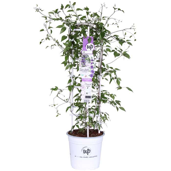 A very special Clematis that flowers throughout the summer. From May to September you can enjoy its large purple umbels. The Clematis provides an oasis of flowers in its first year. Unlike most Clematis species that flower for one to two months, ‘Masa’ can be enjoyed for up to five months. On a pergola or climbing frame, ‘Masa’ will grow to a maximum height of 180 cm. This Clematis prefers a spot in the (semi-) full sun. The most ideal location is in the morning and/or evening sun. Because ‘Masa’ is a compact variety, it can also be placed in a pot on a balcony, terrace or even in a hanging basket. In order for the Clematis to climb better, it needs a little help. It is best to guide the plant up along a rack, wire or stick. Pruning is not necessary. However, remove dead and damaged twigs in early March. You can prune this Clematis in the spring to a maximum height of 20 centimetres above the ground.