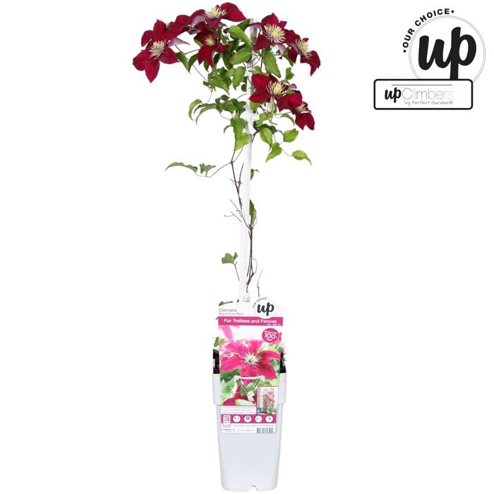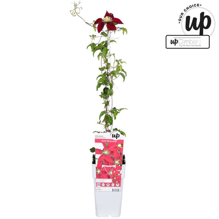 A very special Clematis that flowers throughout the summer. From May to September you can enjoy its large red umbels. The Clematis provides an oasis of flowers in its first year. Unlike most Clematis species that flower for one to two months, ‘Elpis’ can be enjoyed for up to five months. On a pergola or climbing frame, the Clematis ‘Elpis’ will grow to a maximum height of 180 cm. This clematis prefers a spot in the (semi-) full sun. A spot in the morning and/or evening sun is most ideal. Because ‘Elpis’ is a compact variety, it can also be placed in a pot on a balcony, terrace or even in a hanging basket. In order for the Clematis to climb better, it needs a little help. The best way is to guide the plant along a rack, wire or stick. Pruning is not necessary. However, remove dead and damaged twigs in early March. You can prune this Clematis in the spring to a maximum height of 20 centimetres above the ground.