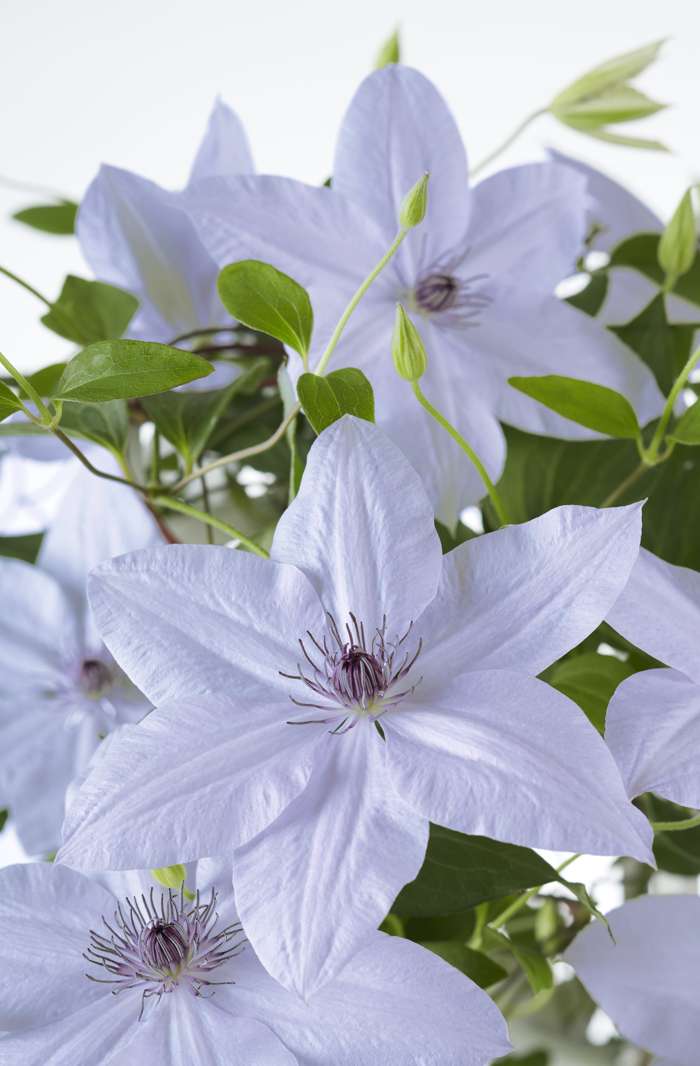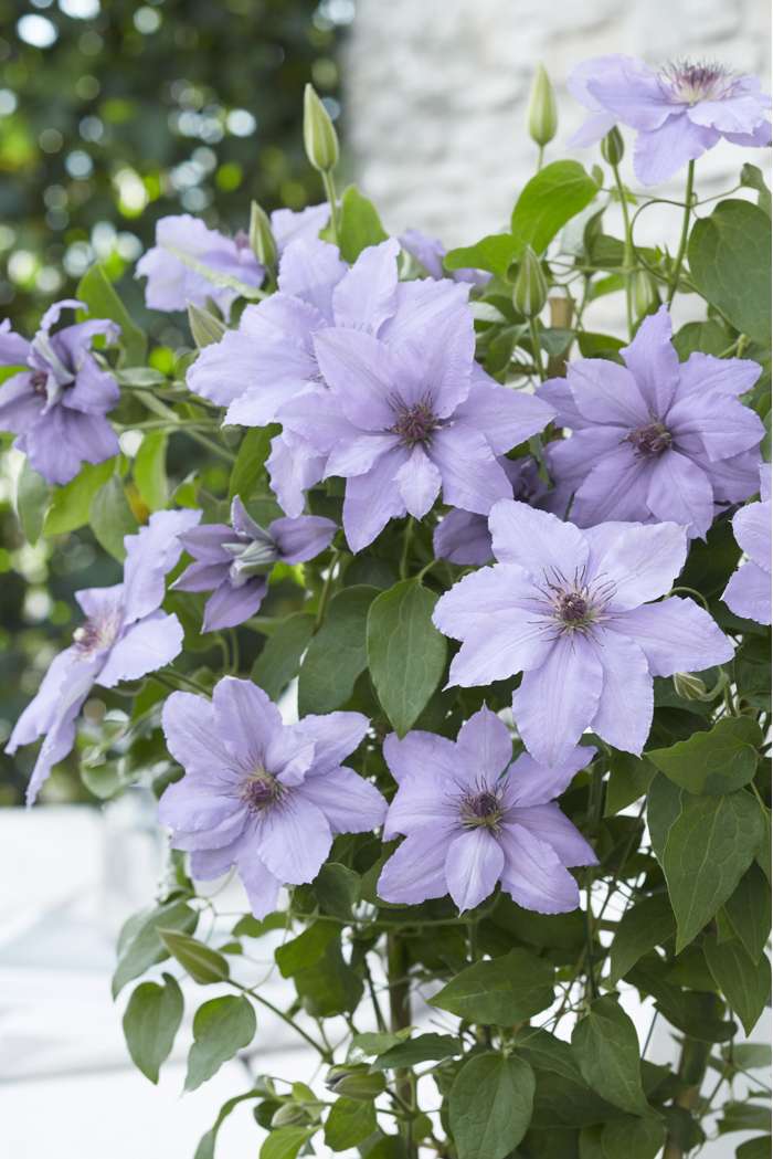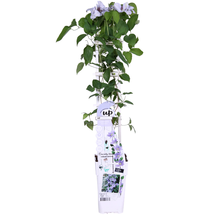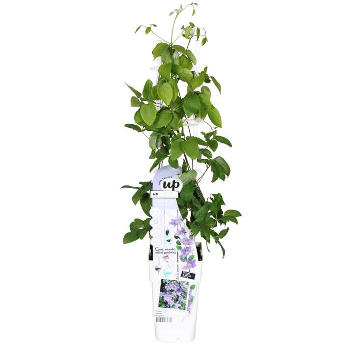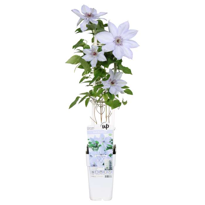 A very special Clematis that flowers throughout the summer. From May to September you can enjoy its large light-blue umbels. Already in the first year, the Clematis provides an oasis of flowers. Unlike most Clematis species that flower for one to two months, ‘Bernadine’ can be enjoyed for up to five months. On a pergola or climbing frame, ‘Bernadine’ will grow to a maximum height of 180 cm. This Clematis prefers a spot in the (semi-) full sun. A spot in the morning and/or evening sun is most ideal. Because ‘Bernadine’ is a compact variety, it can also be placed in a pot on a balcony, terrace or even in a hanging basket. In order for the Clematis to climb better, it needs a little help. The best way is to guide the plant along a rack, wire or stick. Pruning is not necessary. However, remove dead and damaged twigs in early March. You can prune this Clematis in the spring to a maximum height of 20 centimetres above the ground.