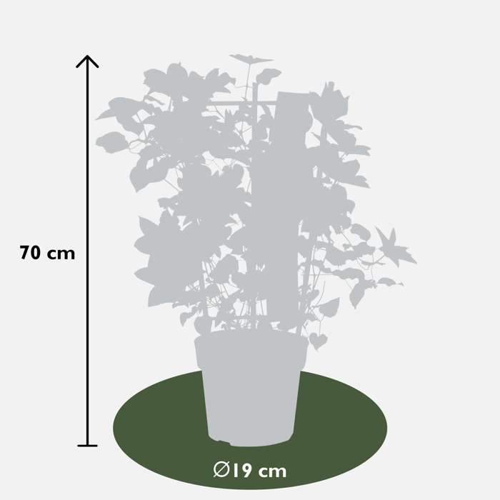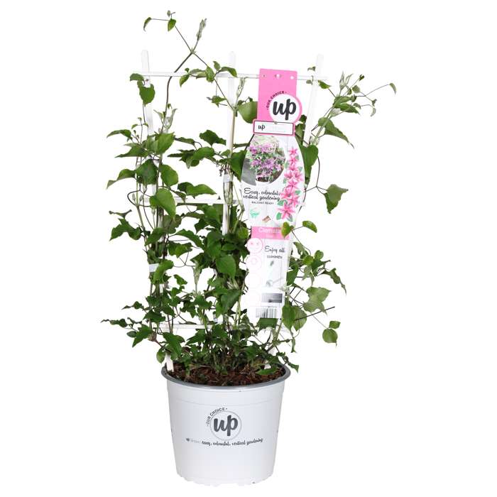 A very special Clematis that flowers throughout the summer. From May to September you can enjoy its large dark pink striped umbels. The Clematis provides an oasis of flowers in its first year. Unlike most Clematis species that flower for one to two months, ‘Yuan’ can be enjoyed for up to five months. Clematis ‘Yuan’ will grow to a maximum height of 180 cm on a pergola or climbing frame. This clematis prefers a spot in the (semi-) full sun. The most ideal location is in the morning and/or evening sun. Because ‘Yuan’ is a compact variety, it can also be placed in a pot on a balcony, terrace or even in a hanging basket. In order for the Clematis to climb better, it needs a little help. The best way is to guide the plant along a rack, wire or stick. Pruning is not necessary. However, remove dead and damaged twigs in early March. You can prune this Clematis in the spring to a maximum height of 20 centimetres above the ground.