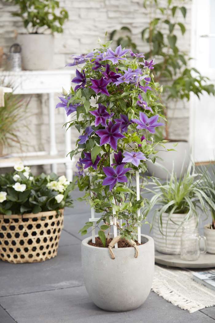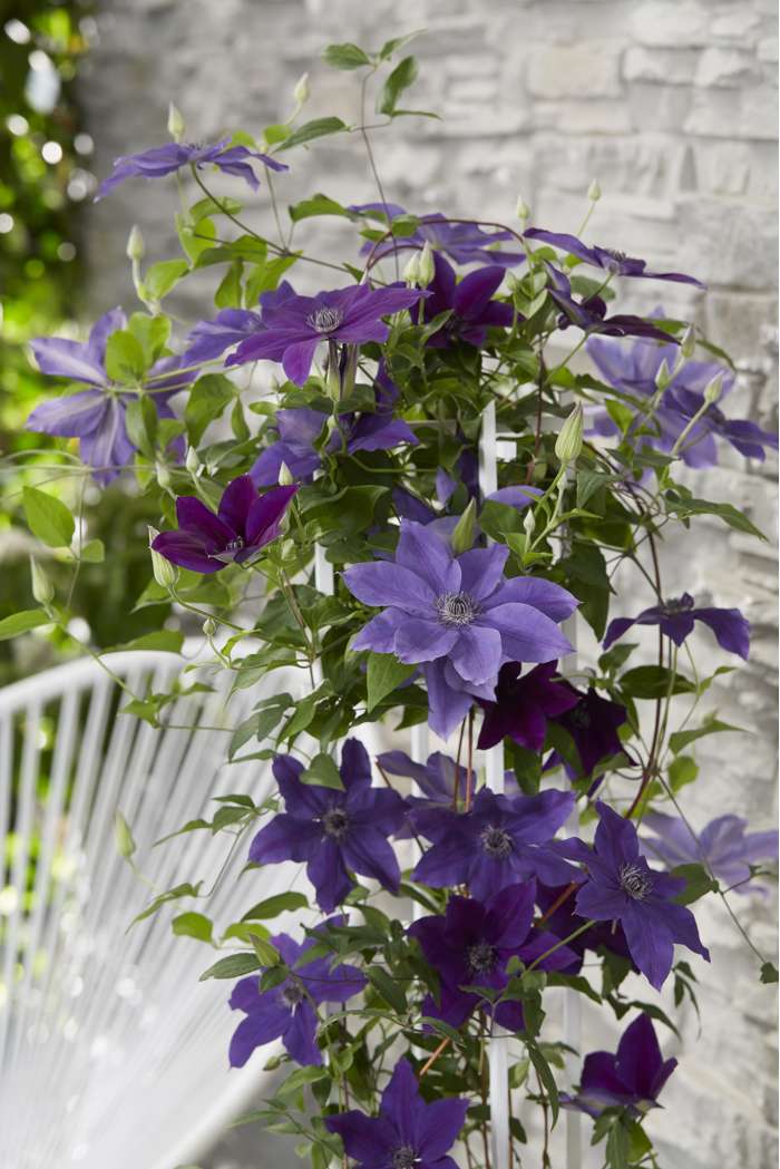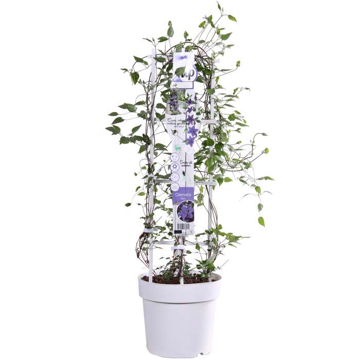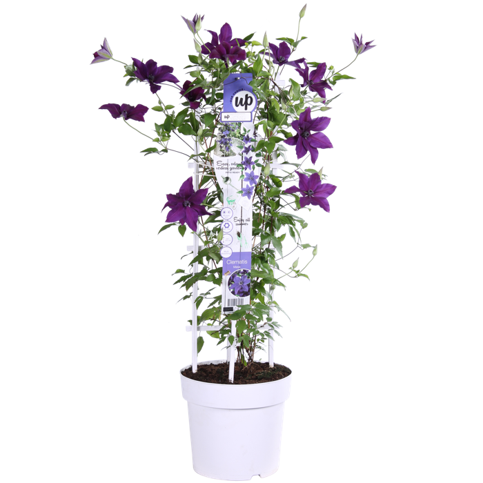 A very special Clematis that flowers throughout the summer. From May to September you can enjoy its large purple umbels. The Clematis provides an oasis of flowers in its first year. Unlike most Clematis species that flower for one to two months, ‘Masa’ can be enjoyed for up to five months. On a pergola or climbing frame, ‘Masa’ will grow to a maximum height of 180 cm. This Clematis prefers a spot in the (semi-) full sun. The most ideal location is in the morning and/or evening sun. Because ‘Masa’ is a compact variety, it can also be placed in a pot on a balcony, terrace or even in a hanging basket. In order for the Clematis to climb better, it needs a little help. It is best to guide the plant up along a rack, wire or stick. Pruning is not necessary. However, remove dead and damaged twigs in early March. You can prune this Clematis in the spring to a maximum height of 20 centimetres above the ground.