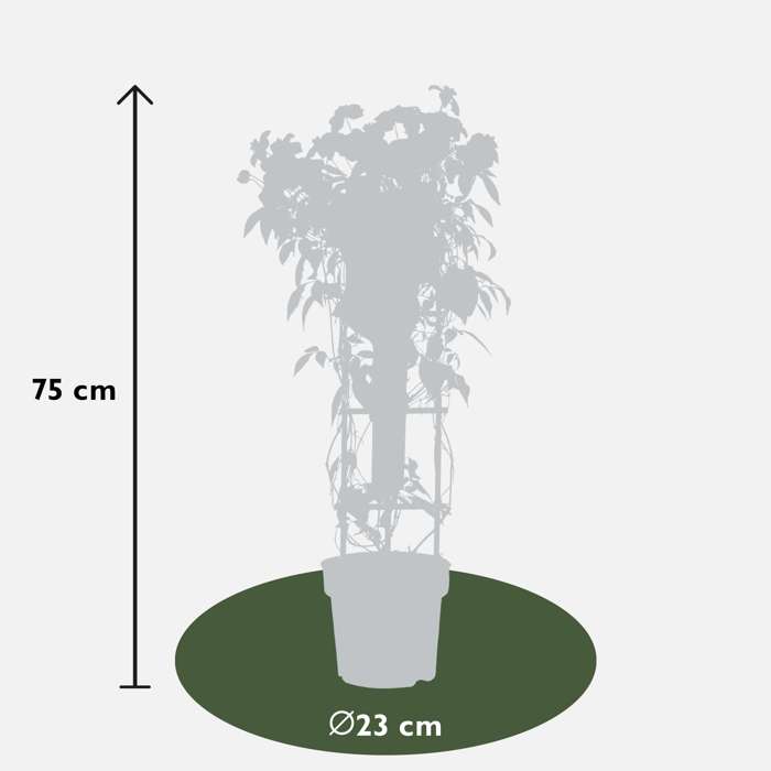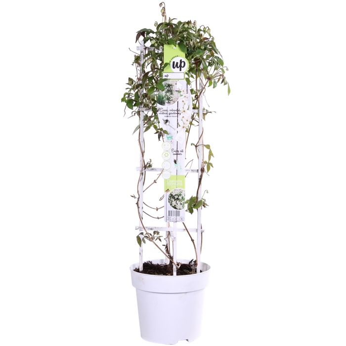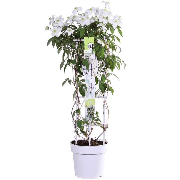 The Clematis ‘Montana’ is one of our favourites. It is a strong climber that grows quickly and flowers very abundantly with numerous cheerful flowers. The ‘Montana’ varieties grow faster than the Large flowers Clematis varieties. The Clematis ‘Montana’ varieties from the ‘Our Choice’ series are characterised by longer and richer flowering and are more resistant to disease than the regular ‘Montana’ varieties. They remain much more compact and grow to a height of 2 to 3 metres. The Clematis can be placed in a large pot or flower box, but can also grow against a climbing frame. They bloom in May/July with intensely coloured small flowers that change colour as they get older. Place this Clematis in the full sun or semi shade. If the Clematis is in full sunlight, it is important that the roots stay out of the sun. Cover the root ball well and plant it 10 to 15 cm deep. After the flowering period, the plant can be pruned back to 50 cm. Pruning keeps the plant young and in shape, but pruning is not necessary.