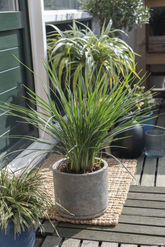Dianella Coolvista’, a real terrace plant for the summer! Requires little water and withstands the sun well. Be cool, plant the ‘Coolvista’! Dianella Coolvista’ shows its trendy blue-grey leaves all year round. It has a prickly upright habit and branches easily. The plant is drought/heat resistant and prefers a well-drained soil in full sun. This species is not Hardy and needs protection to survive the winter. It is ideal to put in an ornamental pot on your terrace or balcony. You can also combine it with other plants in a nice mixed planter. Enjoy blue-grey shades in your garden with ‘Dianella Coolvista’.