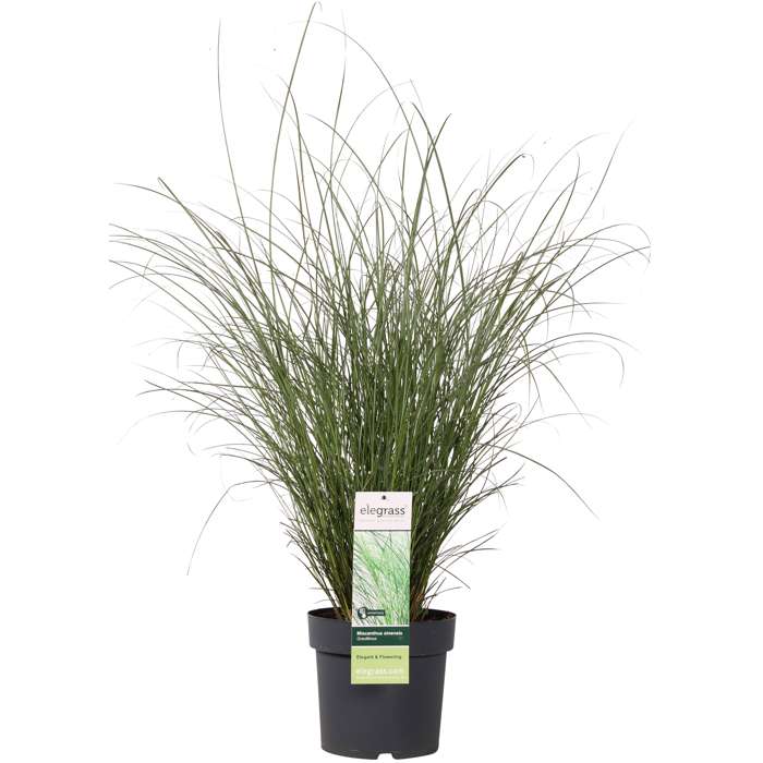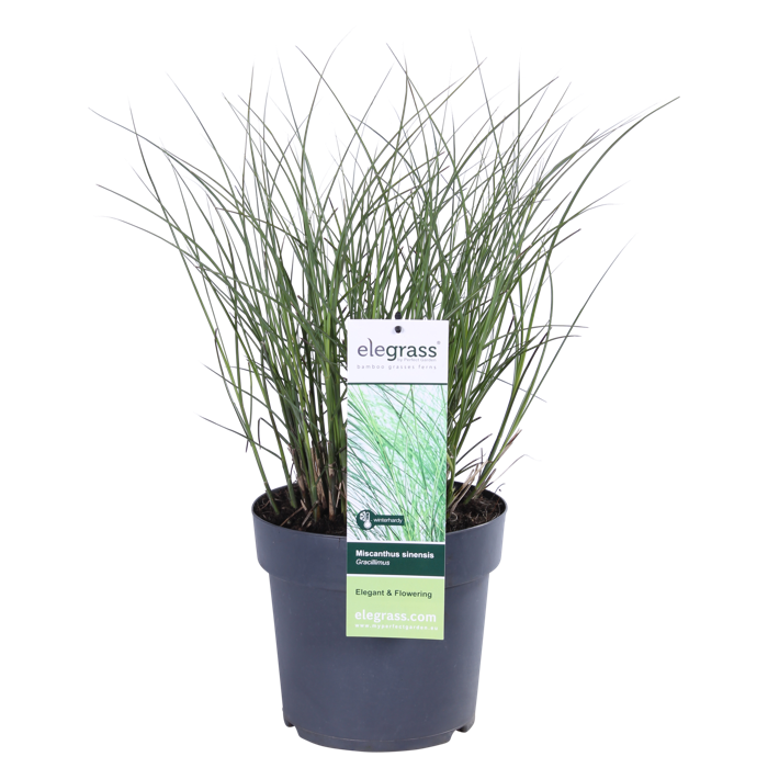 ‘Miscanthus Sinensis Gracillimus’ is an ornamental grass with decorative green leaves with white veins that hang down in an arch. The fresh green blades are relatively thin and move beautifully in the wind. The flowering is less abundant than other ‘Miscanthus’ species, but this characteristic makes it more suitable for the smaller garden. He flowers in the autumn with pink plumes. After the winter it is best to cut this ornamental grass to 10 cm above the ground for a quick and fresh regrowth. The ‘Miscanthus’ has become increasingly popular because it combines well with hard materials and modern, sleek garden furniture. Standing alone in a nice pot, Miscanthus sinensis Gracillimus is usually the most beautiful.