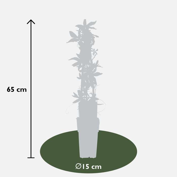 Passiflora caerulea’ is a climbing plant with beautiful ivory-white-blue passion flowers. This is the best known variety because it is best suited for our climate and reasonably Hardy. You can expect flowers in the Passion Flower from June to September. The Passion Flower is a real fair-weather bloomer. On warm days with lots of light and sun, the buds will pop open. On colder and darker days, few flowers will pop open. It is a real climber and therefore likes some support when growing on a climbing frame or fence. The passion flower is not a difficult plant. It is relatively insensitive to the well-known plant diseases, grows quickly and is not very demanding as far as soil and nutrition are concerned. However, ‘Passiflora caerulea’ prefers a sunny spot. It flowers more abundantly in the sun than in a place with more shade. Do not be afraid to prune the plant back when it gets too big and too wild. It is a strong and fast-growing plant that will suffer little from this. It may happen that this tropical climber dies above the ground after a harsh winter. In that case, cut the plant off completely. There is a good chance that it will start growing again from the roots in the spring.