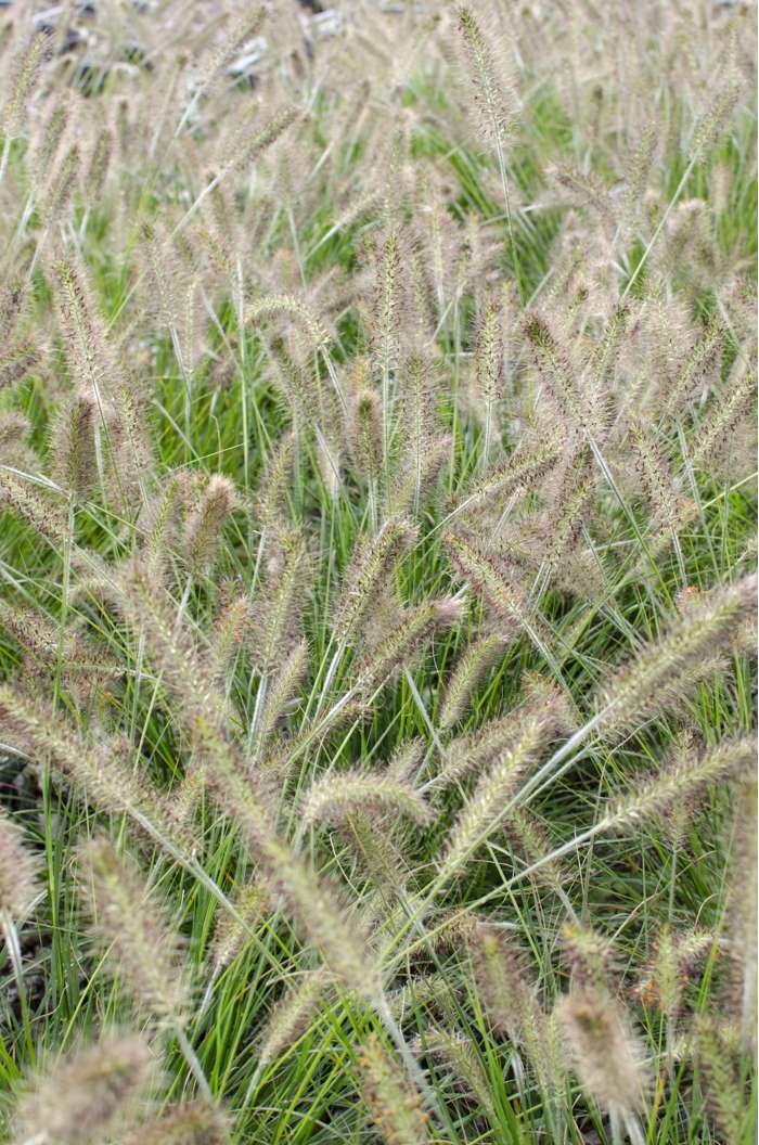 Pennisetum alopecuroides ‘Hameln’ is a particularly popular deciduous grass with a round, compact, clump forming habit. The leaves are narrow linear, medium to dark green, arching and arching, turning a golden yellow in autumn. Pennisetum alopecuroides ‘Hameln’ flowers from July to September with greenish creamy white spikes that turn greyish brown later in the autumn. It prefers a position in full sun or half-shadow and a well-drained, moderately fertile soil that is not too heavy. This pennisetum is fairly hardy and drought-tolerant, and tolerates sea wind and air pollution well. It is an attractive ornamental grass for the mixed border, the gravel garden, prairie garden or also useful as a tub plant and suitable as a cut flower.