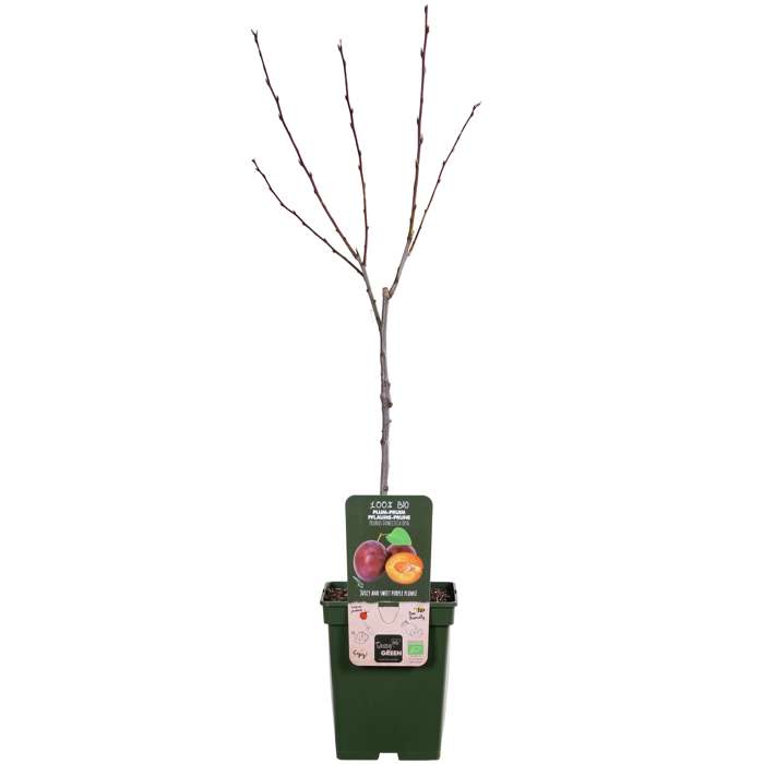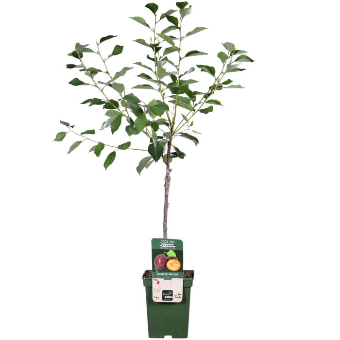 ‘Prunus Domestica Opal’ is a plum tree with juicy and sweet fruits that have a purple-red colour on the outside and yellow flesh. This plum is not critical of the type of soil in which it is planted, it is almost impervious to diseases and self-pollinating. So it does not need another tree for pollination. It is an early ripening plum whose fruits can be picked from July onwards. It is a fine hand plum, but also very suitable for compote and jam. In general, the ‘Prunus domestica Opal’ does not need much pruning. If you want to prune, it is best to do so after flowering. In the end, make sure the tree is open with a number of main branches, from which the side branches emerge. It is a plum tree that provides many flowers and its own fruit in your garden. All fruit, including the plum, ripens best in the sun. So give this fruit tree a sunny spot in the garden.