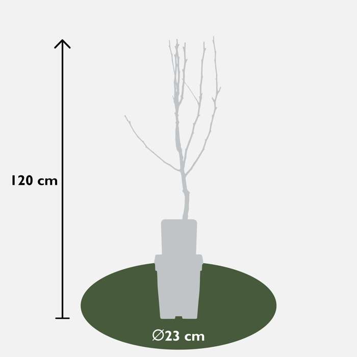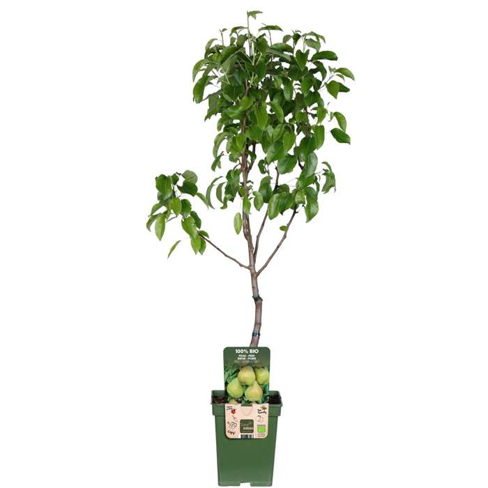 ‘Pyrus Communis Doyenne du Comice’ is a self-pollinating pear tree. It is a juicy Pear for snacking with a delicious sweet fragrance and taste. The fruit is large, wide with an irregular shape and yellow-brown in colour. You can pick the pears in the second half of September. The pear tree is strong, almost impervious to disease and fairly easy to maintain. Besides the fruit, the pear tree has other ornamental values. The tree blossoms in spring, the leaves are fresh green and turn yellow to orange-red in autumn. Insects and butterflies love the flowers and pears. The advantage is that wasps can also find anything near this tree and are therefore less likely to come onto your terrace. The pear tree does best in a sunny spot in the garden. Pruning the pear tree is best done in winter. Make sure the tree is open with a number of main branches, from which the side branches emerge.