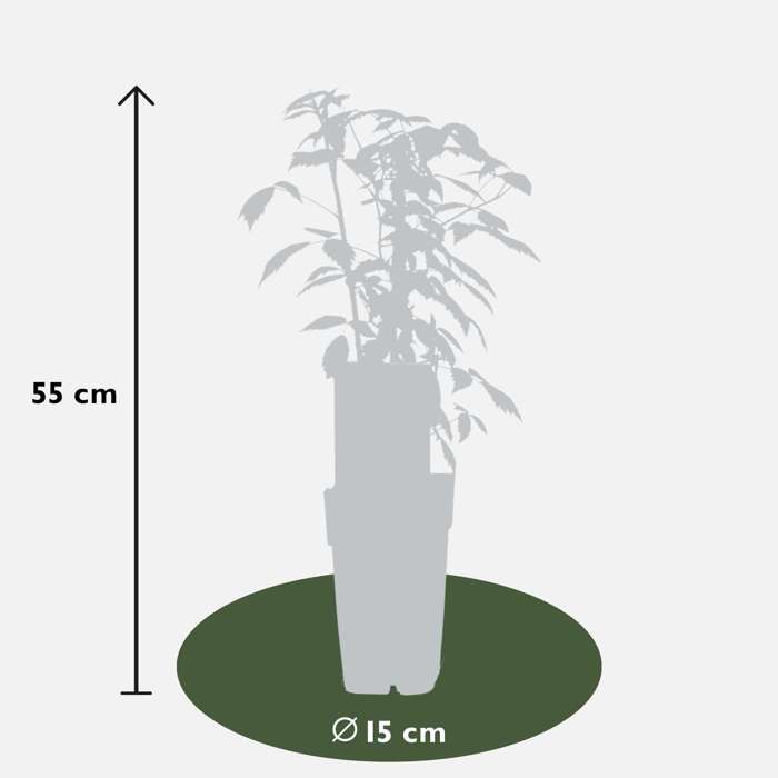 ‘Rubus Idaeus Heritage’ is an autumn raspberry and thus has fruit in the autumn. The flowering of this shrub starts at the end of May with white flowers, and is then richly pollinated by bees and bumblebees. The fruits can be picked at the end of August until the beginning of October. The fruit is bright red and somewhat smaller than other raspberry varieties, but has a good flavour. The raspberry can be eaten fresh, but can also be frozen or used to make delicious jam or liqueur. The fruit is very healthy, being full of antioxidants, minerals and vitamins. This is a very productive species, so a good harvest is guaranteed! After the harvest, it is advisable to remove the branches that have borne fruit so that new young branches can grow in the new year. Rubus idaeus Heritage’ prefers a sunny position in a nutritious, humus-rich soil. It prefers to be placed near a mesh or fence, so that the shrub’s rather flabby stems can be fastened.