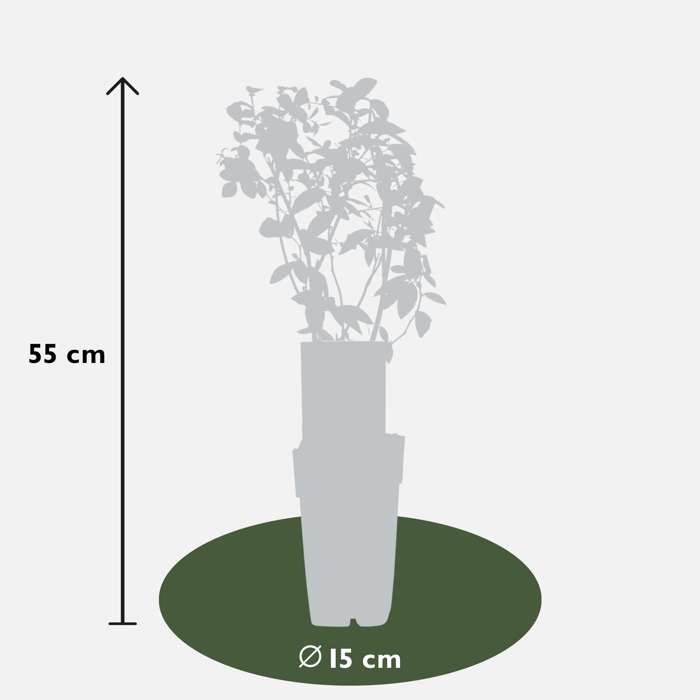 Vaccinium Corymbosum Northland’ is a blueberry native to North-Eastern America. The blueberry blooms in May and June with white flowers that develop into large aromatic blue berries in August. The fruits are firm, light blue with a good taste. They are also suitable for making jam or jelly. Blueberries are a very healthy and tasty fruit. The berry contains anthocyanin, a substance that gives the berry its blue colour. This substance has a good effect on the heart and blood vessels. In addition, blueberries contain antioxidants and there are few foods that contain more antioxidants than blueberries. The shrub prefers a sunny spot in slightly acid soil. Otherwise, the plant will produce little fruit or even die. This plant is quite Hardy. The leaves turn a beautiful orange-red in the autumn and then fall off. Protect the berries from birds with a net. Prune in late winter the old branches to 15 cm above the ground, so that new branches get enough space and light.