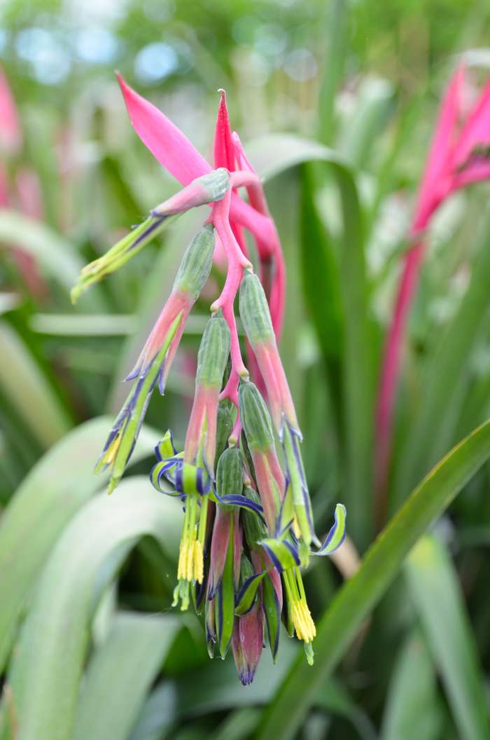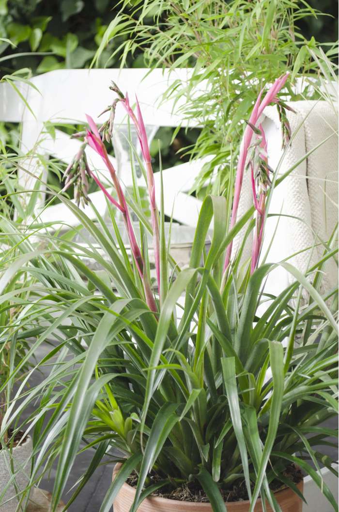 Bromelia billbergia nutans’ ook Queens tears genaamd komt van origine uit het bosrijke gebied van Brazilië. Deze schitterende bromelia groeit daar voornamelijk in de bomen maar ook op de grond. De wortels van de plant zorgen ervoor dat deze zich hecht aan de boom. Deze plant is makkelijk in onderhoud en staat graag in de zon/halfschaduw. Als de plant af en toe een beetje te weinig water krijgt is er niets aan de hand, hij kan namelijk goed tegen droogte. In het hart van de plant zitten meerdere kokers waarin water en voedingstoffen door de plant worden opgenomen. Het donkergroene blad is langwerpig en wordt tot 30 cm lang. Vanuit het hart van de plant groeien afwisselend afhangende bloemstengels. Hieruit groeien prachtige diep roze langwerpige bloemen. Na verloop van tijd groeien hieruit weer afhangende roze/blauwe kroonbladeren met fel gele stampers. Hoe ouder de plant wordt hoe meer bloemen je gedurende het jaar kan verwachten. In de winter kun je de plant als deze als kuipplant wordt gehouden op een vorstvrije plaats laten overwinteren. Als de plant in de tuin staat moet je er in de winter voor zorgen dat de wortels niet bevriezen en deze goed afdekken gedurende de vorstperiode.