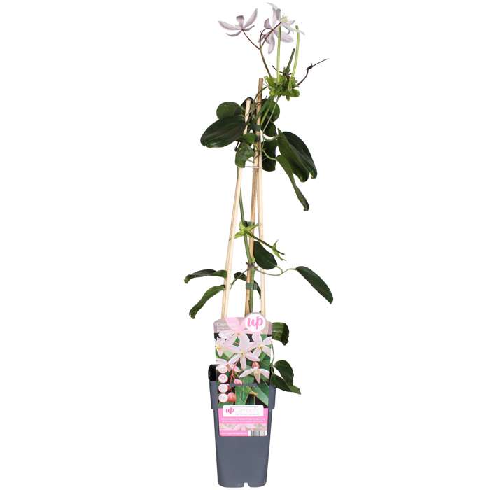 ‘Clematis armandii Apple Blossom’ dankt zijn naam aan de bloemen die qua kleur een grote gelijkenis vormen met de bloemen van de appelbomen. De bloemen zijn namelijk in de knop roze van kleur, de bloembladeren zelf zijn wit gekleurd met geelwitte meeldraden in het midden. De bloemen verschijnen al in het vroege voorjaar aan de klimplant. Het is een uitbundige bloeier, waar bijen graag op af komen. Bijzonder aan deze klimplant is dat dit een van de weinige clematissen is die groen blijft in de winter. Zijn bladeren zijn leerachtig, langwerpig groen en zijn zeer elegant. Het is een klimplant, die zich hecht met kronkelende bladstengels en goed tegen een schutting, muur of pergola kan groeien, maar wel klimdraad of een klimrek nodig heeft. Je kan hem af en toe een beetje helpen door nieuwe uitlopers netjes langs het rek te binden of door de schutting te leiden. Hij staat graag op een beschut en zonnig plekje in de tuin. De clematis zal bij meer zon rijkelijker bloeien. De clematis is winterhard tot wel -10 graden. Het snoeien van de clematis is niet noodzakelijk. Je kan eventueel na de bloei hem wat terug knippen, dit kan de bloei bevorderen.