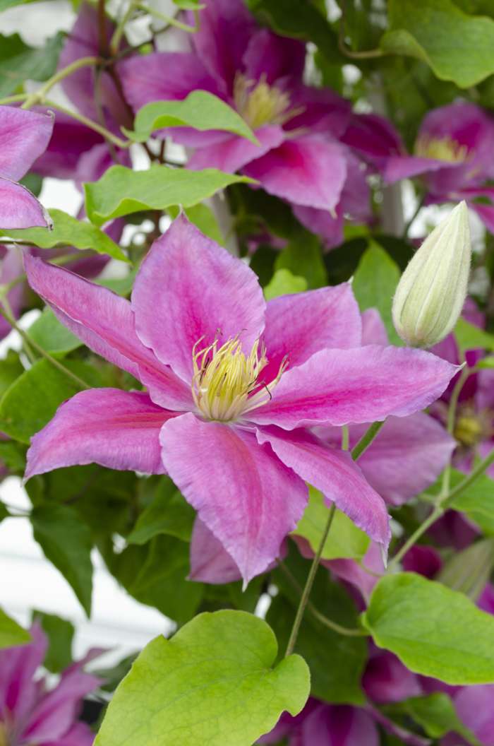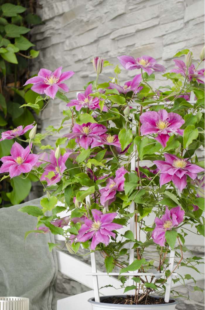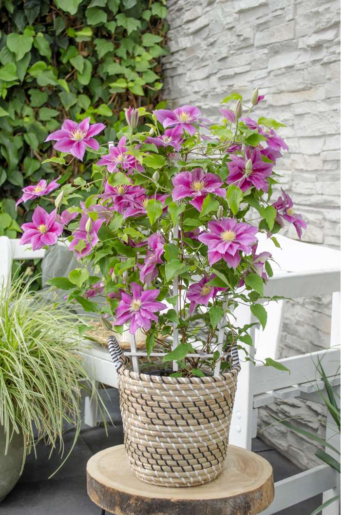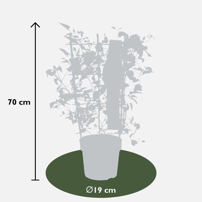‘Clematis Vicki’ is een zeer bijzondere Clematis die de gehele zomer doorbloeit. Van mei tot september kan je genieten van haar grote schermbloemen. Al in het eerste jaar zorgt de Clematis voor een oase aan bloemen. In tegenstelling tot de meeste Clematis soorten die 1 tot 2 maanden bloeien, kan je van ‘Vicki’ wel 5 maanden genieten. De clematis ‘Vicki’ wordt tegen een pergola of klimrek maximaal 180 cm hoog. Deze Clematis staat het liefst op een plek in de (half)volle zon. Het meest ideaal is een plek op de ochtendzon en/of avondzon. Doordat ‘Vicki’ een compact soort is kan deze ook neergezet worden in een pot op een balkon, terras of zelfs in een hangende mand. Om de Clematis beter te laten klimmen heeft deze een beetje hulp nodig. Het beste kun je de plant langs een rek, draad of stok omhoog leiden. Snoeien is niet noodzakelijk. Verwijder echter wel de dode en beschadigde twijgen begin maart. Je kan deze Clematis in het voorjaar tot maximaal 20 centimeter boven de grond terug snoeien.