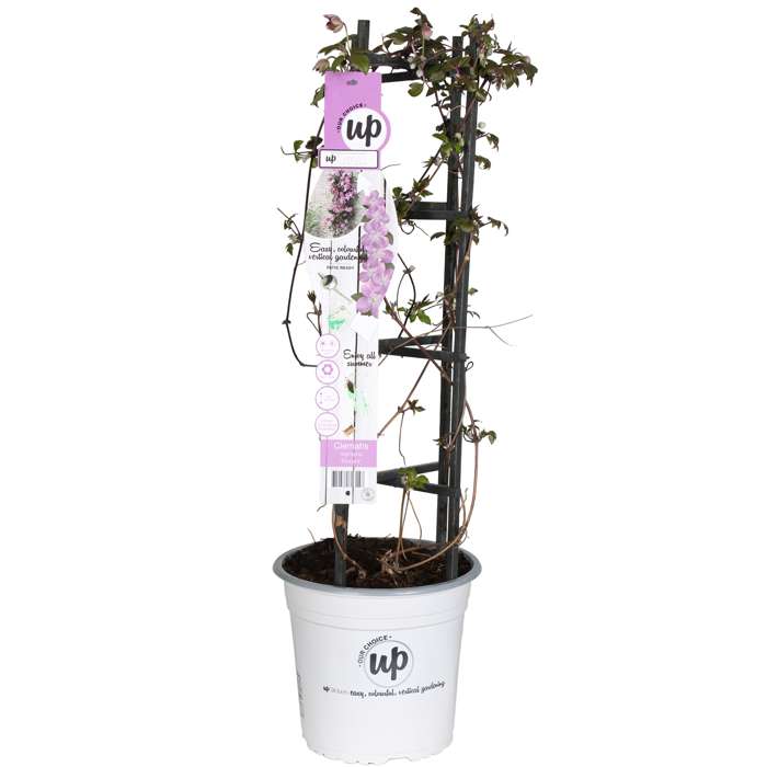 ‘Clematis montana Fincent’ is een krachtige groeier. De jonge blaadjes zijn bronsgroen van kleur. De bloemen zijn roze van kleur met gele meeldraden. De Clematis montana ‘Fincent’ kenmerkt zich door een langere en rijkere bloei en is beter bestand tegen ziektes dan de gewone Montana soorten. Ook blijven ze een stuk compacter, zo’n 2 m tot 3 m hoog en kunnen ook in een ruime pot of bloembak staan en tegen een klimrek aangroeien. Ze bloeien in de periode mei-juli met intens gekleurde redelijk kleine bloemen die verkleuren naarmate ze ouder worden. Plant de Clematis langs een rek of schutting en help de nieuwe uitlopers door ze netjes langs het rek te binden of door de schutting te leiden. Je kunt de montana het beste in de zomer snoeien. Zij bloeien namelijk op oud hout (takken van het jaar ervoor). In de zomer snoei je jouw Clematis dus eigenlijk in vorm voor de daaropvolgende lente. Vergeet ook niet om dode of oude takken volledig te verwijderen. Een goede snoei zorgt voor een rijkere bloei in het voorjaar. Clematis montana ‘Fincent’ houdt van een standplaats in de halfschaduw of volle zon en verlangt een neutrale tot kalkrijke, goed doorlaatbare grondsoort.