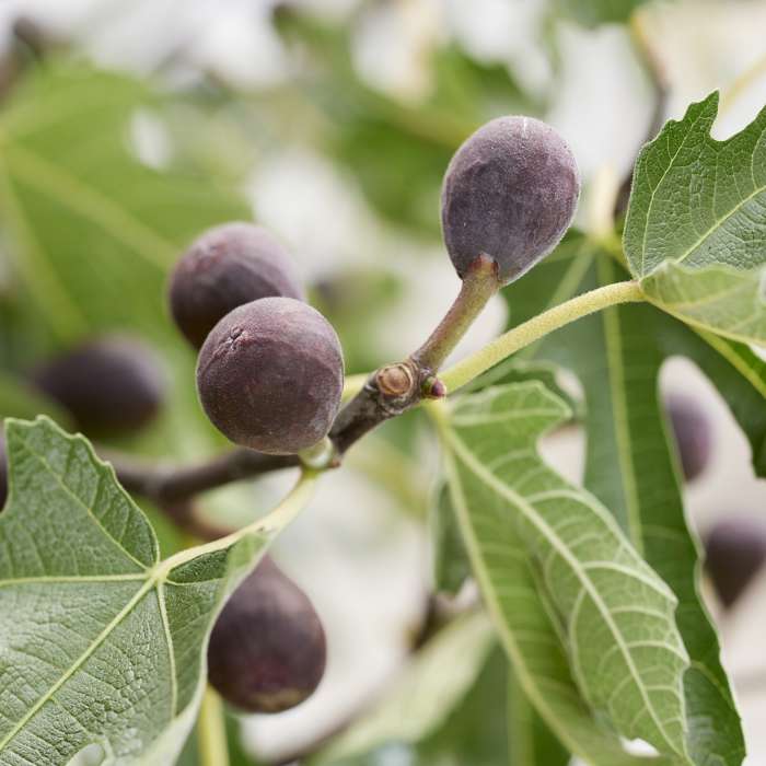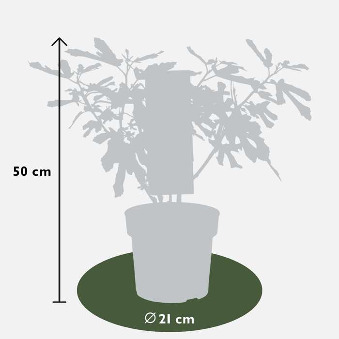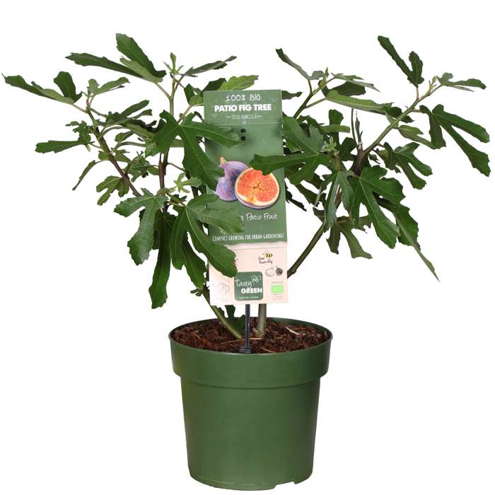 Ficus Little Miss Figgy’ is een zeer compacte dwergvijg, die slechts 90 cm hoog en breed wordt. Ondanks de geringe hoogte produceert de vijgenboom vanaf augustus grote hoeveelheden zoete, bordeauxrode vijgen met aardbeirood vruchtvlees. Een perfecte plant om van te smullen, en extra geschikt voor een kleinere tuin of in een pot op het balkon of terras. De mini vijgenboom zorgt voor een mediterrane sfeer met zijn diep donkergroene bladeren en de enorme hoeveelheid vruchten. De planten zijn droogtetolerant en houden van een standplaats uit de wind in de volle zon. In de zon ontwikkelen de vruchten tijdens de oogstperiode hun volle aroma. Het tot -15° C winterharde fruitboompje doet het goed in elke goed doorlatende grond, geeft echter de voorkeur aan een droge, lichte grond. Om de gewenste vorm en grootte te behouden kan de vijg in de winter, als de bladeren eraf gevallen zijn, gesnoeid worden.