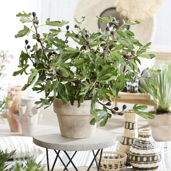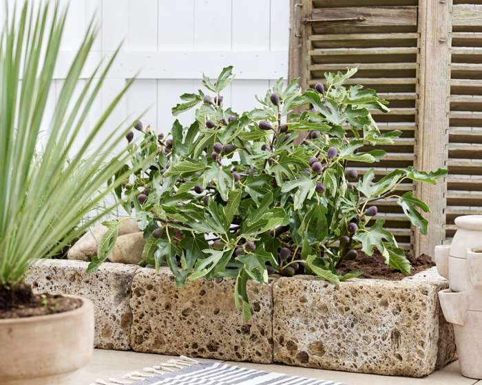 Ficus Little Miss Figgy’ is een zeer compacte dwergvijg, die slechts 90 cm hoog en breed wordt. Ondanks de geringe hoogte produceert de vijgenboom vanaf augustus grote hoeveelheden zoete, bordeauxrode vijgen met aardbeirood vruchtvlees. Een perfecte plant om van te smullen, en extra geschikt voor een kleinere tuin of in een pot op het balkon of terras. De mini vijgenboom zorgt voor een mediterrane sfeer met zijn diep donkergroene bladeren en de enorme hoeveelheid vruchten. De planten zijn droogtetolerant en houden van een standplaats uit de wind in de volle zon. In de zon ontwikkelen de vruchten tijdens de oogstperiode hun volle aroma. Het tot -15° C winterharde fruitboompje doet het goed in elke goed doorlatende grond, geeft echter de voorkeur aan een droge, lichte grond. Om de gewenste vorm en grootte te behouden kan de vijg in de winter, als de bladeren eraf gevallen zijn, gesnoeid worden.