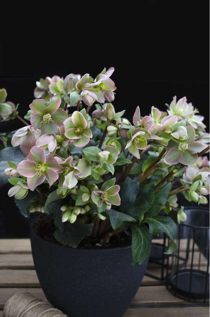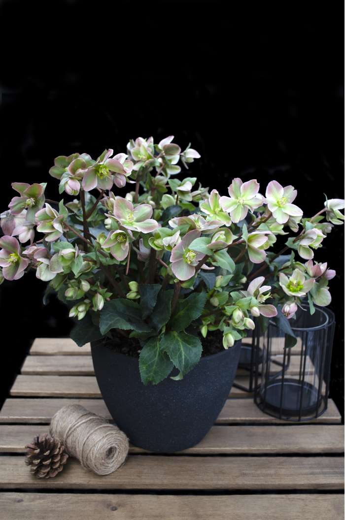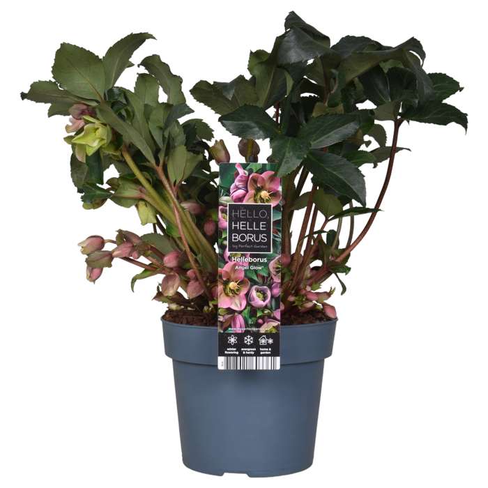 Helleborus ‘Angel Glow’ is een soort met een gemiddelde hoogte van 50 cm. Rond de kerst verschijnen de eerste bloemen aan bruinrode stelen. De bloemen zijn witroze tot lichtroze en naarmate ze ouder worden verkleuren ze naar een donkerroze/groene tint. Het blad van deze plant is leerachtig en glanzend grijsgroen. Zodra de bloemknoppen aan de Helleborus komen, kan je een deel van de bladeren van de kerstroos weg knippen. De bloemen vallen dan nog meer op. De Helleborus is een van de weinige groenblijvende en bloeiende vaste planten in de winter, waardoor het een echte aanvulling is voor je tuin. Na de bloei kan je de stengels van de Helleborus terugknippen en het lelijk geworden blad verwijderen. De Helleborus staat graag op een licht of volledig beschaduwde plek. De plant is geschikt in een border omdat hij goed combineert met andere planten, maar het is ook een opvallende plant die daarom ook goed kan staan in een pot.