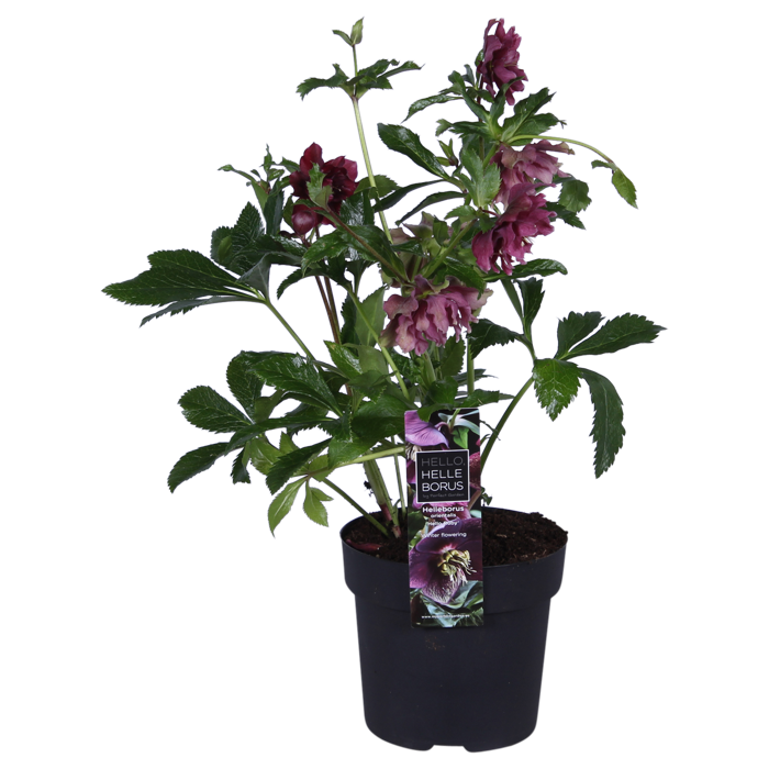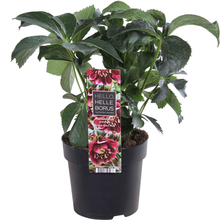 ‘Helleborus orientalis Double Ellen Red’ is een plant met prachtige dubbele bloemen op lange stelen. Deze cultivar bloeit met rood-paarse bloemen. De plant is winterhard én wintergroen en staat het liefst op een plek in halfschaduw. Om de plant mooi en gezond te houden mag deze absoluut geen natte voeten hebben in de winter. Deze tuinplant staat niet graag in de volle zon, maar groeit goed op een plek met ochtend- en of avondzon. Geef de helleborus een vruchtbare en goed doorlatende grond. Strooi in de lente een laagje compost verrijkt met organische meststoffen en vermijd verplanten. Wil je de plant toch verzetten is eind augustus/begin september daarvoor de beste periode. Als het oude blad in de winter lelijk is geworden, dan kun je dat gerust afknippen zodra ze gaan bloeien. Dat laat de bloemen van de helleborus veel mooier uitkomen.