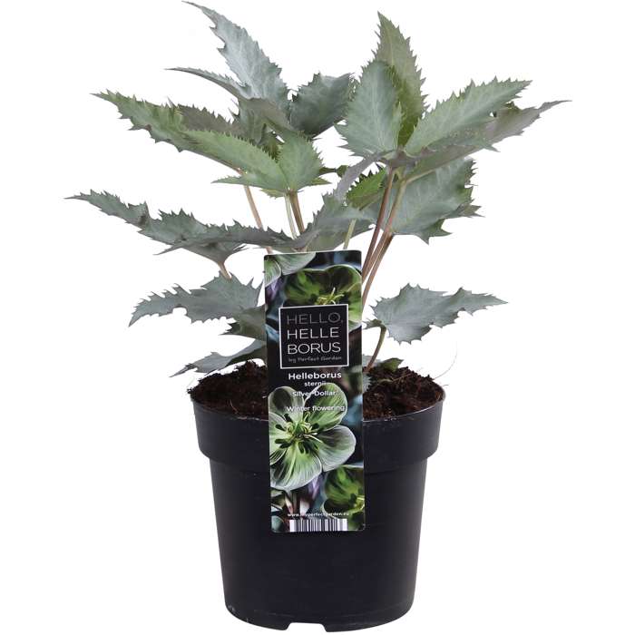 ‘Helleborus Sternii Silver Dollar’ vindt haar oorsprong op de bergachtige eilanden in het Middelandse zeegebied. De Sternii is een kruisting tussen twee andere Helleborussen uit ons assortiment: de Lividus en de Argutifolius. Het blad en de winterharde eigenschappen van de Sternii komen van de Argutifolius, terwijl het compacte en de bloem op dat van de Lividus lijkt. Het is een vaste plant met zeer stevig, ruw gerand, grijs-groen gekarteld blad en rood getinte stelen. De lichtgroene bloemen hebben een rood-paarse zweem en zitten in een grote tros aan een stevige bloemstengel. Vanaf januari kunnen de eerste bloemen verschijnen. De Helleborus sternii verlangt een halfschaduw standplaats in vochtige grond. In principe is de plant goed winterhard, maar het is verstandig de plant bij strenge vorst af te dekken om zo vorstschade aan de jonge bloemknoppen te voorkomen. De plant vereist verder weinig tot geen verzorging.