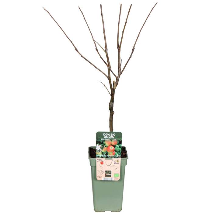 ‘Malus Domestica Elstar’ is een van de bekendste appelbomen in Nederland. De Elstar appel is een bekend ras wat je kunt vinden bij elke groentewinkel, maar niets is leuker dan dit lekkere fruit kweken in eigen tuin. De boom is zelfbestuivend en heeft in het voorjaar een wit-roze bloesem. De friszure handappels kunnen in het najaar geplukt worden en hebben een relatief lange houdbaarheid. Appels bevatten veel voedingsvezels, vitaminen en antioxidanten. Het is ook nog eens de meest gegeten fruitsoort van Nederland. Het is een tamelijk grote vrucht met een helderrode blos en stevig en sappig vruchtvlees. Geef hem de ruimte zodat hij zich kan ontwikkelen tot een echte boom. Al het fruit, dus ook de appel rijpt het best in de zon. Geef hem dus een zonnige plek. Snoeien van de appelboom kan het beste in de winter gebeuren. De appelboom is bijna niet gevoelig voor ziektes en makkelijk in onderhoud.