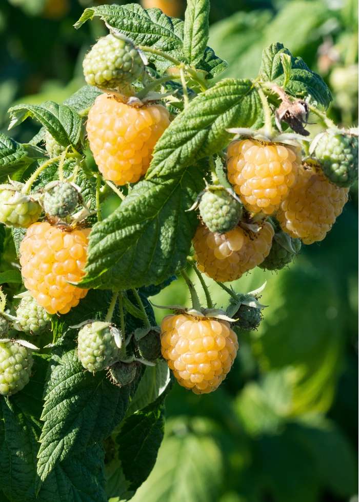 ‘Rubus Idaeus Fallgold’ is een bijzondere herfstframboos, de vruchten zijn namelijk geel van kleur. Ze smaken wat zachter en zoeter dan de bekende roze frambozen. In juni bloeit de struik met onopvallende, kleine wit-roze bloemetjes. De bestuiving van de bloemen gebeurt door bijen en hommels, waardoor je maar één plant nodig hebt om vruchten te krijgen. In de loop van de zomer tot oktober kunnen de gele frambozen worden geoogst. Ze zijn vooral lekker om zo van de struik te eten, want dit zachte fruit is minder lang bewaarbaar. De vruchten zijn erg gezond, ze zitten vol antioxidanten, mineralen en vitaminen. Na de oogst is het verstandig de takken die vruchten hebben gedragen te verwijderen, zodat in het nieuwe jaar er nieuwe jonge takken kunnen groeien.