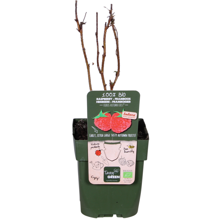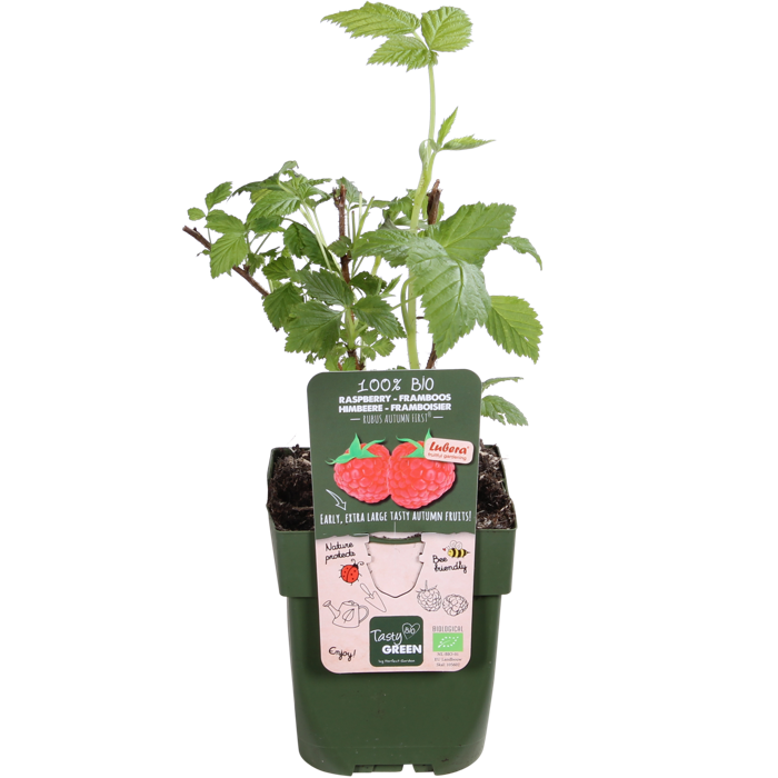 ‘Rubus Autumn First’ is een herfstframboos en heeft dus vruchten in het najaar. De bloei van deze struik begint in juni met witte bloemen, en wordt dan rijk door bijen en hommels bevlogen die zorgen voor de bestuiving. Eind augustus tot oktober kunnen de vruchten geplukt worden. De vruchten zijn groot, helderrood, kegelvormig met een heerlijke zoetzure smaak. De framboos kan je vers eten, maar kan ook ingevroren worden of je kan er heerlijke jam of likeur van maken. De vruchten zijn erg gezond, ze zitten vol antioxidanten, mineralen en vitaminen. Dit is een erg productieve soort, dus een goede oogst is gegarandeerd! Na de oogst is het verstandig de takken die vruchten hebben gedragen te verwijderen, zodat in het nieuwe jaar er nieuwe jonge takken kunnen groeien. De ‘Rubus Autumn First’ geeft de voorkeur aan een zonnige standplaats in een voedzame, humusrijke bodem. Het liefst staat hij bij een gaas- of hekwerk, zodat de vrij slappe stengels van de struik vastgemaakt kunnen worden.