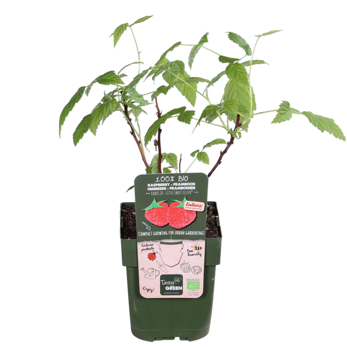 ‘Rubus Low. Little Sweet Sister’ is een compact groeiende dwerg framboos en wordt maximaal 100 cm hoog. Hij is daarom uitermate geschikt voor op je terras of balkon. De frambozen zijn van gemiddelde grote, mooi donkerrood van kleur en lekker zoet. Deze framboos rijpt als een van de eersten, namelijk al in mei. Deze Framboos is zelfbestuivend en bloeit in april met onopvallende, kleine wit-roze bloemetjes waar bijen en hommels op af komen. Na de bloei ontwikkelen de frambozen zich. Zo kunnen zo van de struik gegeten worden, maar van de frambozen kun je ook heerlijk jam en sap maken. Frambozen zijn in de winkel vaak erg prijzig, daarom is het veel leuker ze zelf te kweken! Bij frambozen wordt het eerste jaar alleen een tak gevormd en het volgende jaar komen hieraan vruchten. Na de oogst kunnen daarom gelijk de takken die vrucht gedragen hebben kort bij de grond worden afgeknipt. De jonge takken gaan het jaar daarna bloeien en krijgen dan vruchten. De framboos heeft ondersteuning nodig om goed te kunnen groeien, plaats hem daarom altijd tegen een klimrek. Verder houdt hij van een zonnig plekje.