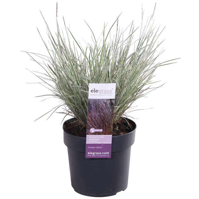 ‘Schizachyrium Scoparium `Chameleon’’ heeft een prachtig groen-wit gestreept blad dat overloopt naar paars-groen gestreept. Deze bladverkleuring gebeurd gedurende het seizoen wat dit kleine prairiegras zo bijzonder maakt. Dit gras heeft hier daar dan ook zijn naam aan te danken. De bloeiperiode is van september tot november. Schizachyrium is een sterk gras dat weinig eisen stelt, hij kan tegen droogte en houdt juist van een plek in de volle zon. Het gras is goed te gebruiken in de border, maar ook altijd leuk in een mooie sierpot.