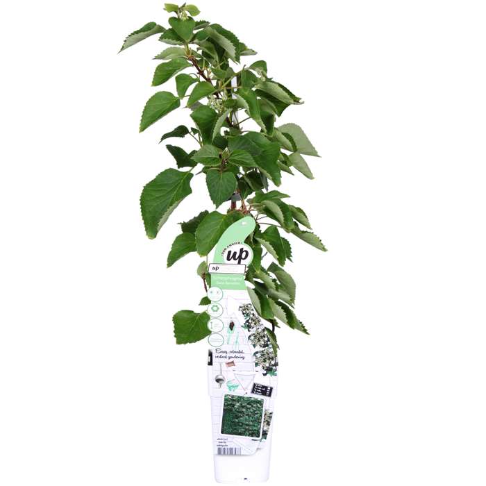 ‘Schizophragma Snow Sensation’ is inderdaad een ware sensatie. Het is een snelle groeier en van juni tot augustus zeer rijk bloeit. De bloemen zijn helder wit en de bloemschermen hebben een diameter van 15-20 cm. De bladeren zijn groot, donkergroen, getand, hartvormig en gepunt. De plant wordt ongeveer 4-10 m hoog en 3-5 m breed. Je kunt de Schizophragma toepassen als klimplant tegen een muur, schutting of pergola maar ook op terras- of balkon met een klimhulp. Deze heester kan indien gewenst na de bloei worden gesnoeid. Plant de Schizophragma in de halfschaduw of schaduw in een goed doorlatende, vruchtbare en vochtige grond. Winterhard tot -15 ºC en zelfhechtend. Deze plant kan ook redelijk tegen zeewind, lokt bijen en vlinders en is vrij goed ziekteresistent en ongediertevrij. De plant is zeer goed geschikt als muurbeplanting of bodembedekker.