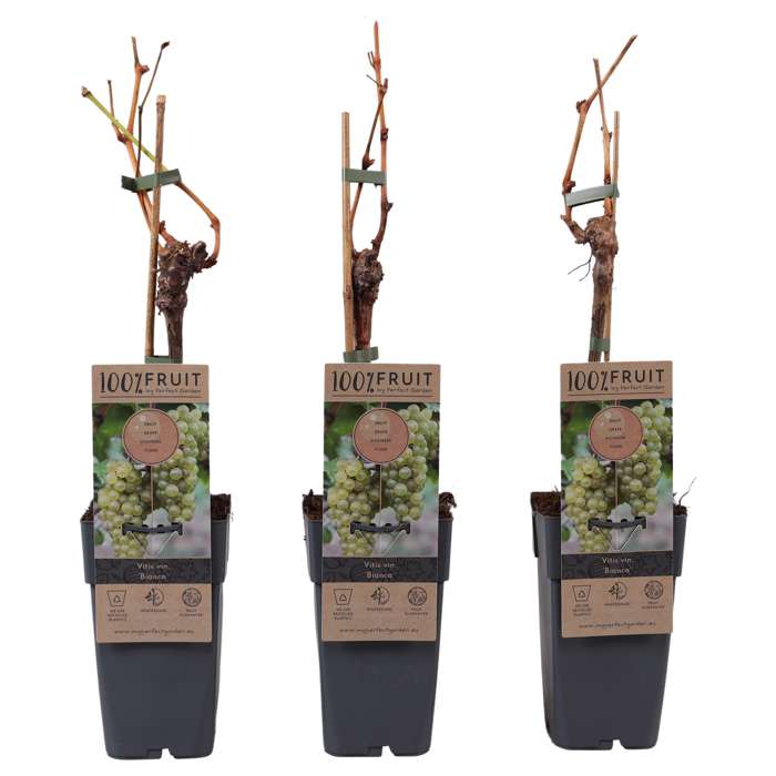 ‘Vitis Bianca’ is een zeer goede buiten druif voor in het Nederlandse klimaat. Dit ras is aan te bevelen voor beginners. Hij is goed resistent tegen diverse ziekten en goed winterhard, geschikt voor zowel directe consumptie als voor wijn. De wijn die gemaakt wordt van deze soort lijkt een beetje op een Sauvignon Blanc. Het is een klimplant die enkele meters hoog kan worden. Je kunt hem zelf in allerlei vormen leiden en door goed te snoeien zeer compact houden. Je kan de druif goed leiden langs een pergola of met spandraden op de muur. De druif geeft in de periode juli-augustus eerst onopvallende trosjes bloemen, waarna de druiventrossen zullen vormen. De vruchten zijn geel van kleur, zoet, sappig met een goed aroma. Je kan ze direct opeten of gebruiken voor jam, sap of het maken van wijn. De druivenplant heeft veel zon nodig om te kunnen rijpen en houdt van warmte waardoor een plek op het zuiden ideaal is. De druiven kunnen vanaf midden september geoogst worden. De bodem dient goed doorlatend en voedzaam te zijn en het liefst niet te zuur, eerder kalkrijk. Door snoeien vergroot je de vrucht opbrengst en de plant ziet er ook netter uit. Het beste snoei je de plant in de periode tussen november en februari, maar niet tijdens strenge vorst. Snoei dan overbodige zij en hoofdtakken weg. Deze druivensoort is winterhard en kan temperaturen tot -20 graden prima aan.