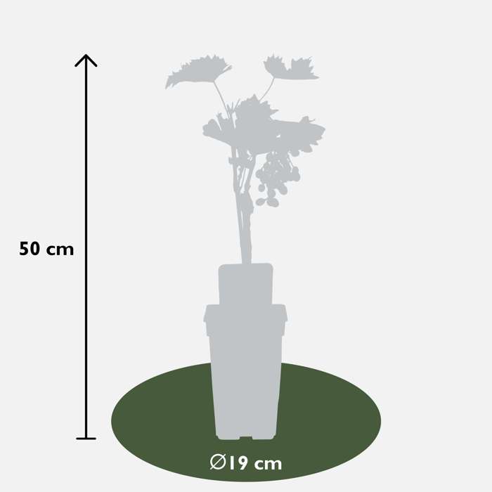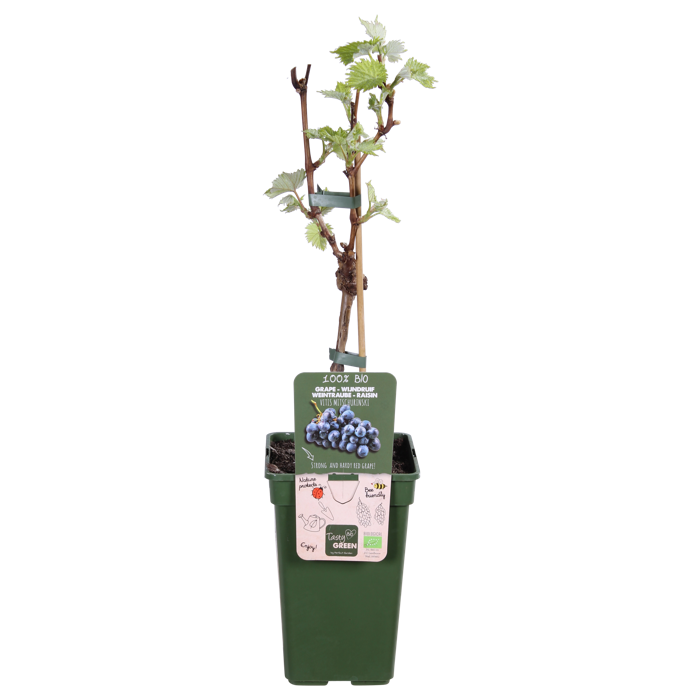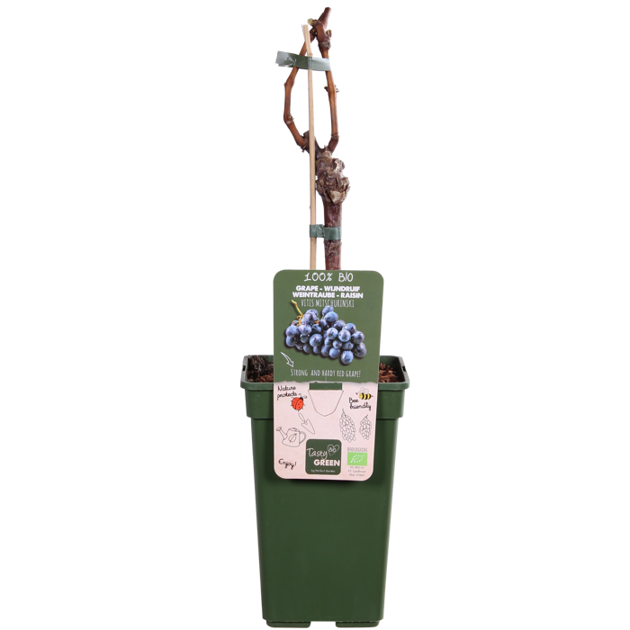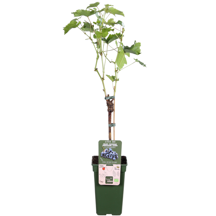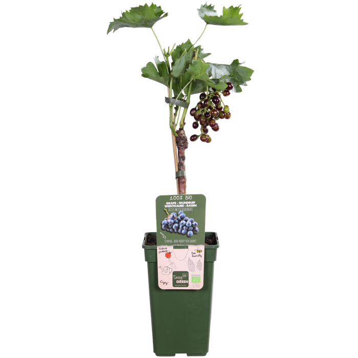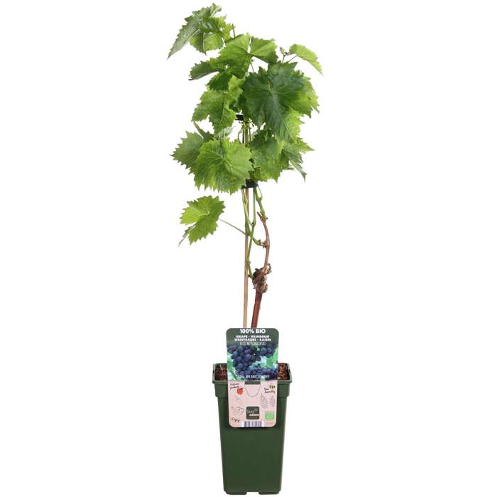 ‘Vitis vinifera Mitschurinski’ is een blauwe druif, erg rijkdragende met milde fruitige zoete vruchten. De bessen zijn middelgroot met middelhard vruchtvlees en een medium dikke schil. De druif is zeer robuust en speciaal gekweekt voor zeer koude gebieden en hoogtes tot 600m. Het ras is voorwaardelijk vatbaar voor valse meeldauw, maar verder gezond van groei. Het is een klimplant die enkele meters hoog kan worden. Je kunt hem zelf in allerlei vormen leiden en door goed te snoeien zeer compact houden. Je kan de druif goed leiden langs een pergola of met spandraden op de muur. De druif geeft in de periode mei- juni eerst onopvallende trosjes bloemen, waarna de druiventrossen zullen vormen. De vruchten zijn blauw van kleur, met een zoete aromatische smaak. Je kan ze direct opeten of gebruiken voor jam, sap of het maken van wijn. De druivenplant heeft veel zon nodig om te kunnen rijpen en houdt van warmte waardoor een plek op het zuiden ideaal is. De druiven kunnen vanaf midden september geoogst worden. De bodem dient goed doorlatend en voedzaam te zijn en het liefst niet te zuur, eerder kalkrijk. Door snoeien vergroot je de vrucht opbrengst en de plant ziet er ook netter uit. Het beste snoei je de plant in de periode tussen november en februari, maar niet tijdens strenge vorst. Snoei dan overbodige zij en hoofdtakken weg. Deze druivensoort is winterhard en kan temperaturen tot -20 graden prima aan.